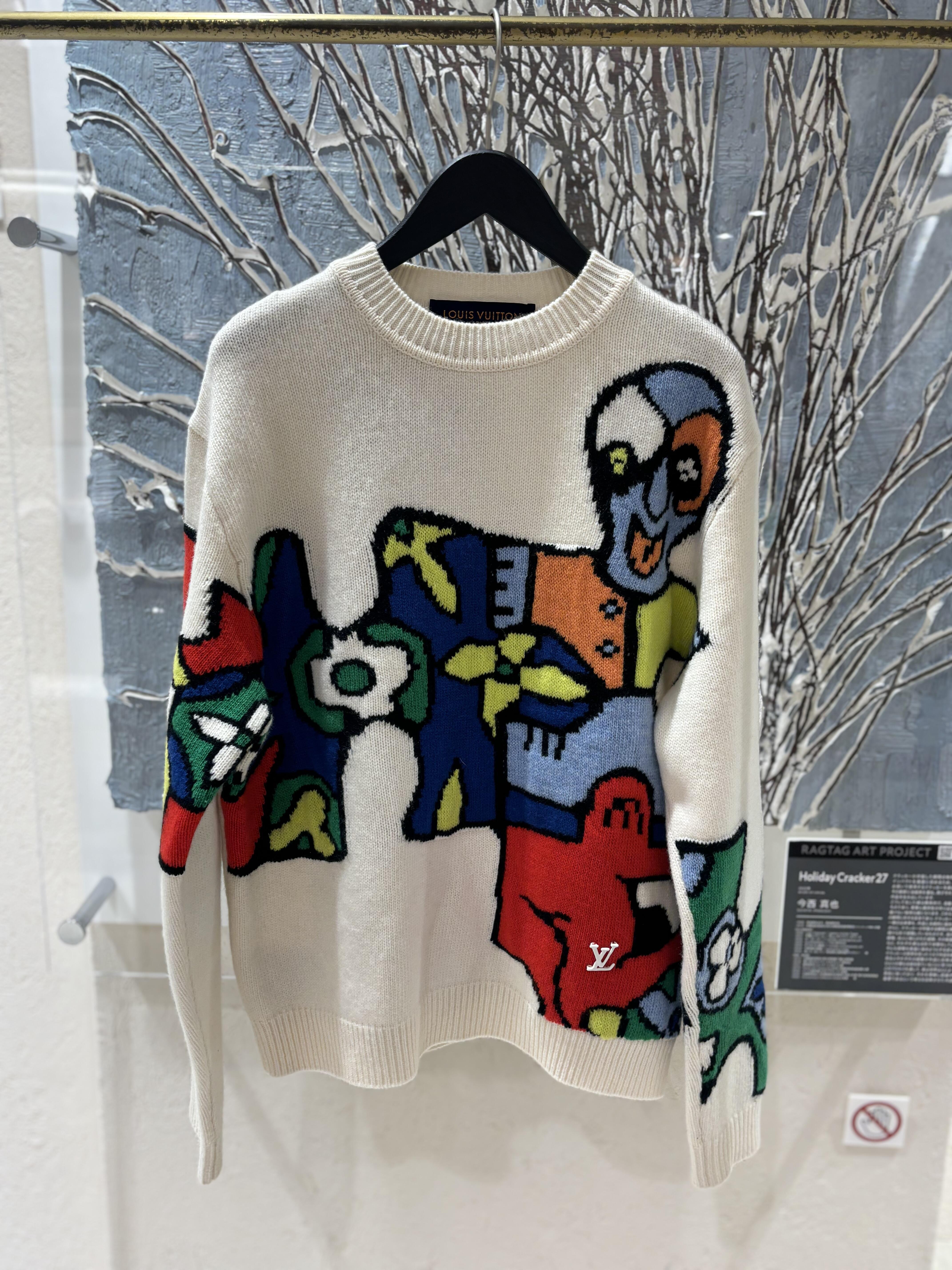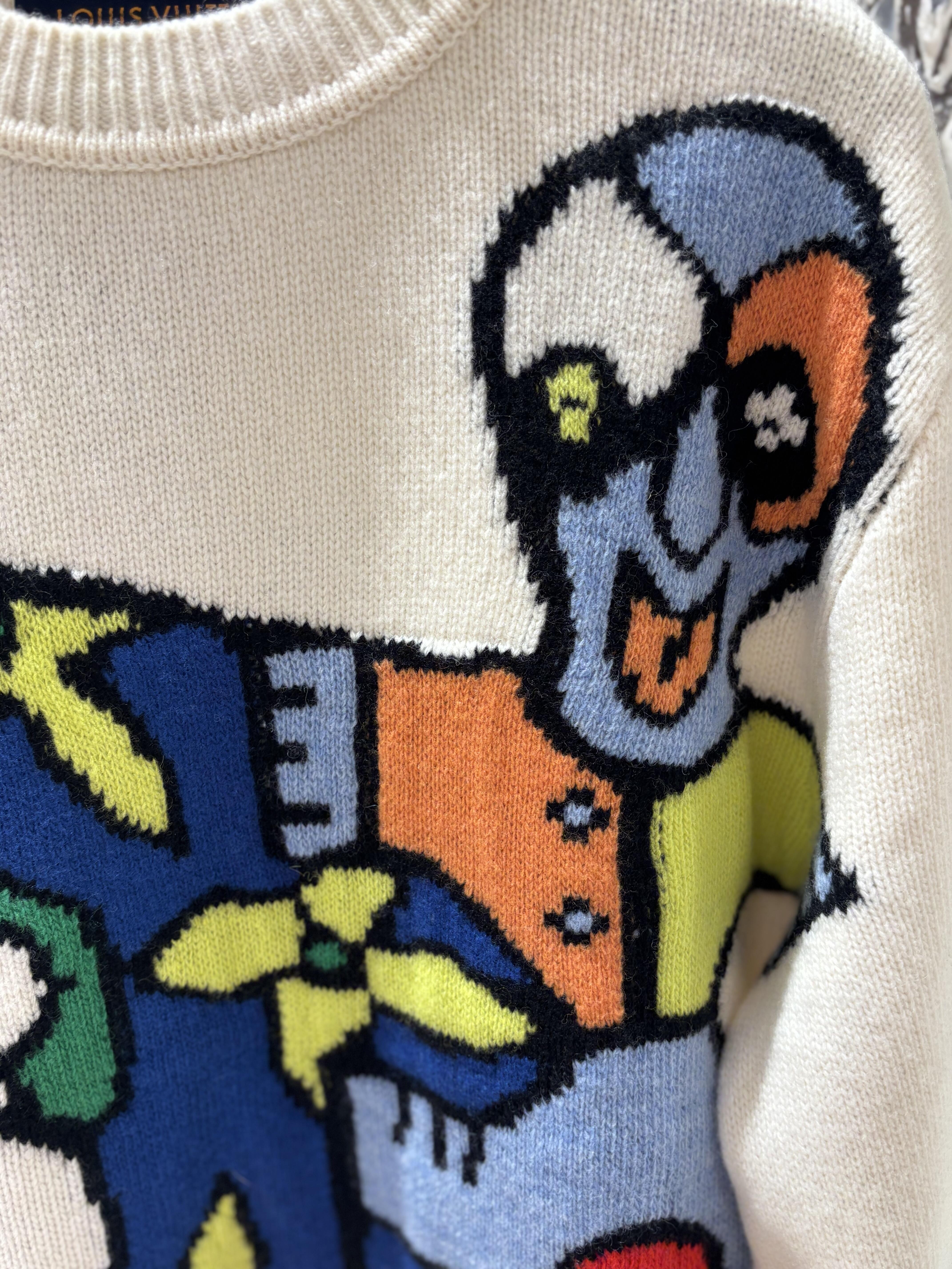 鮮やかなカラーが目を惹くパズルモチーフのニットです。