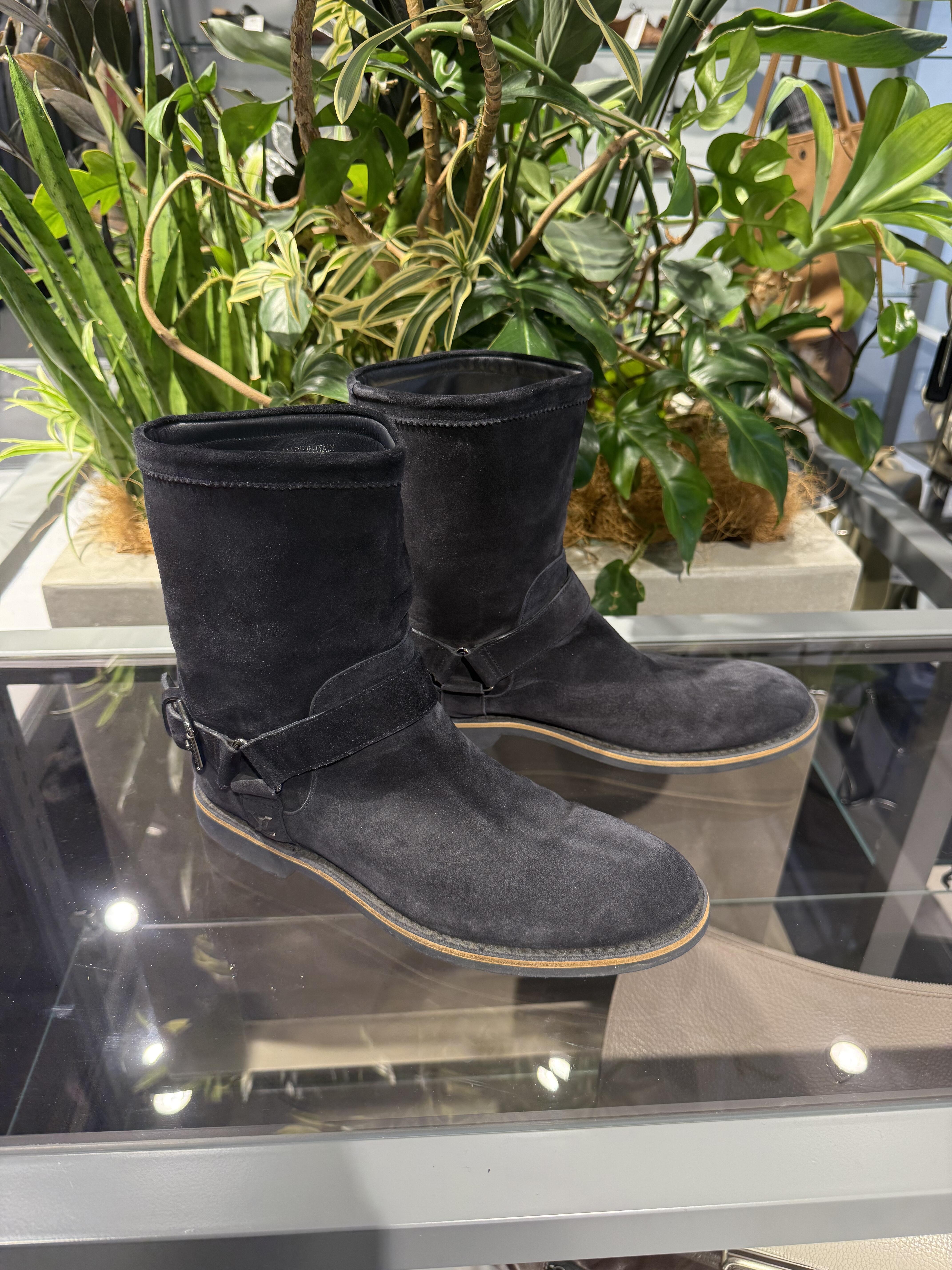 ミドル丈の綺麗な紺色のスエード素材のブーツで、この時期はもちろんオールシーズン使っていただける、汎用性の高いアイテムです。