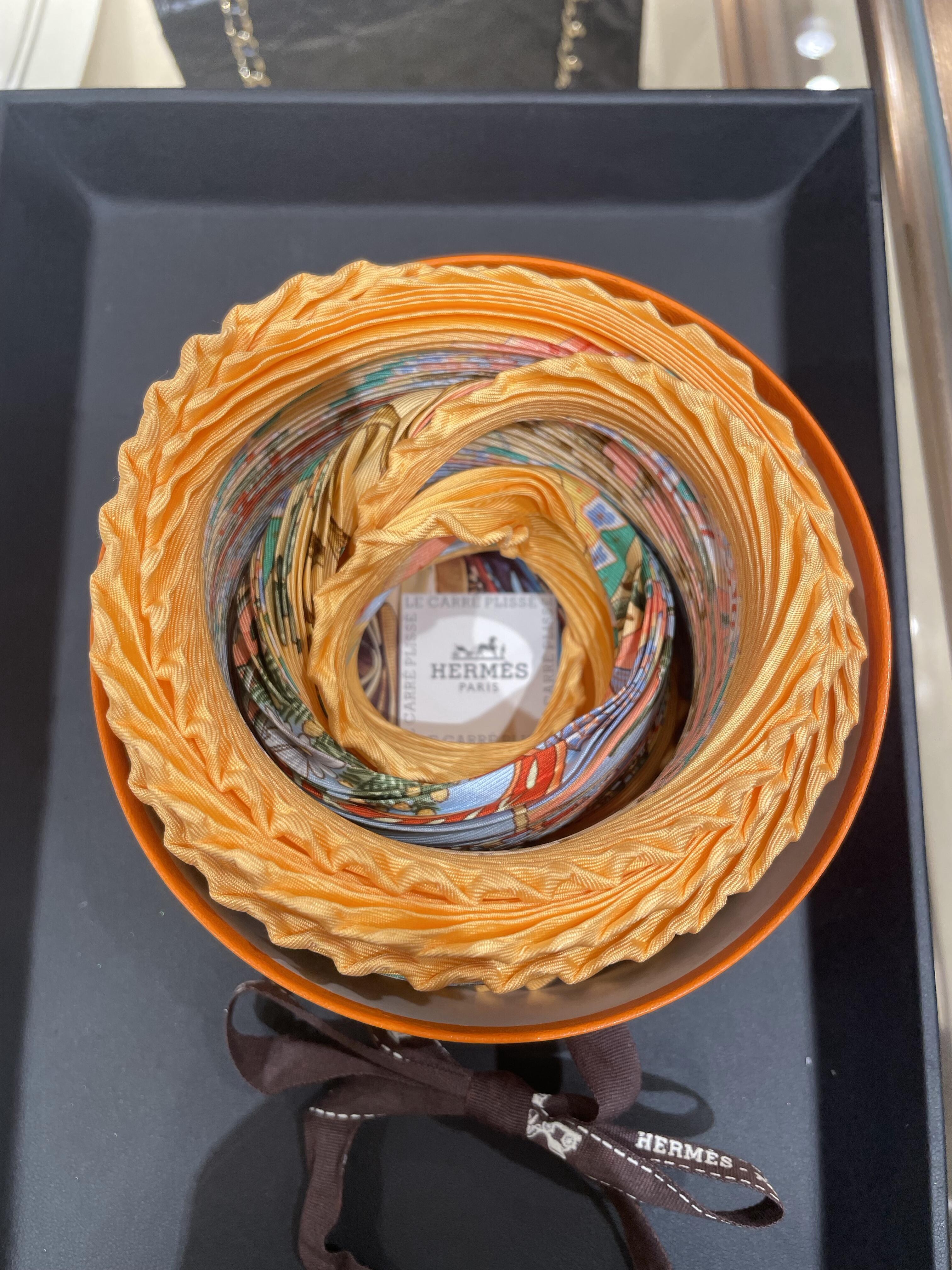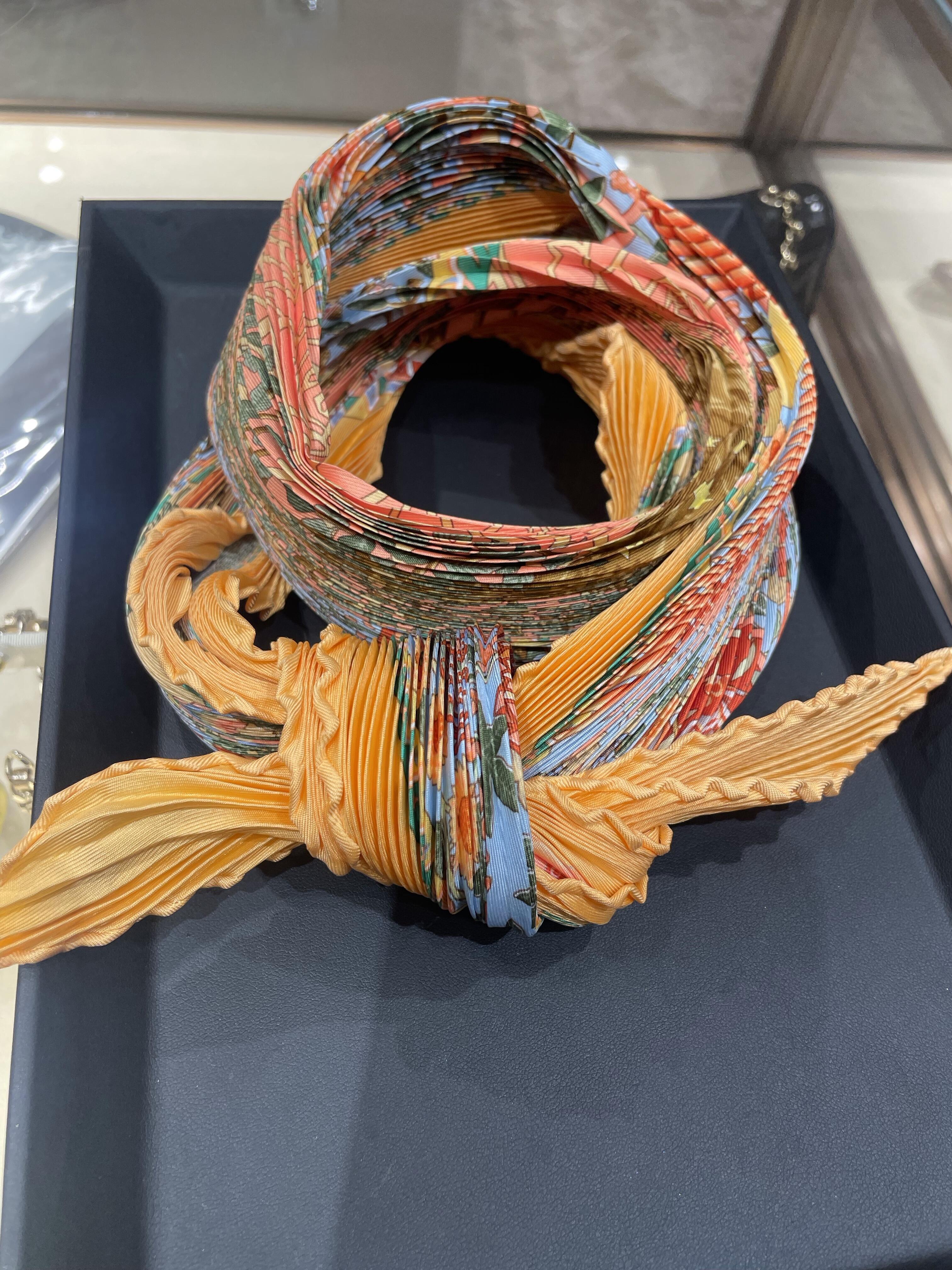 現在は廃盤となったプリーツ加工の施されたシルクスカーフです。
