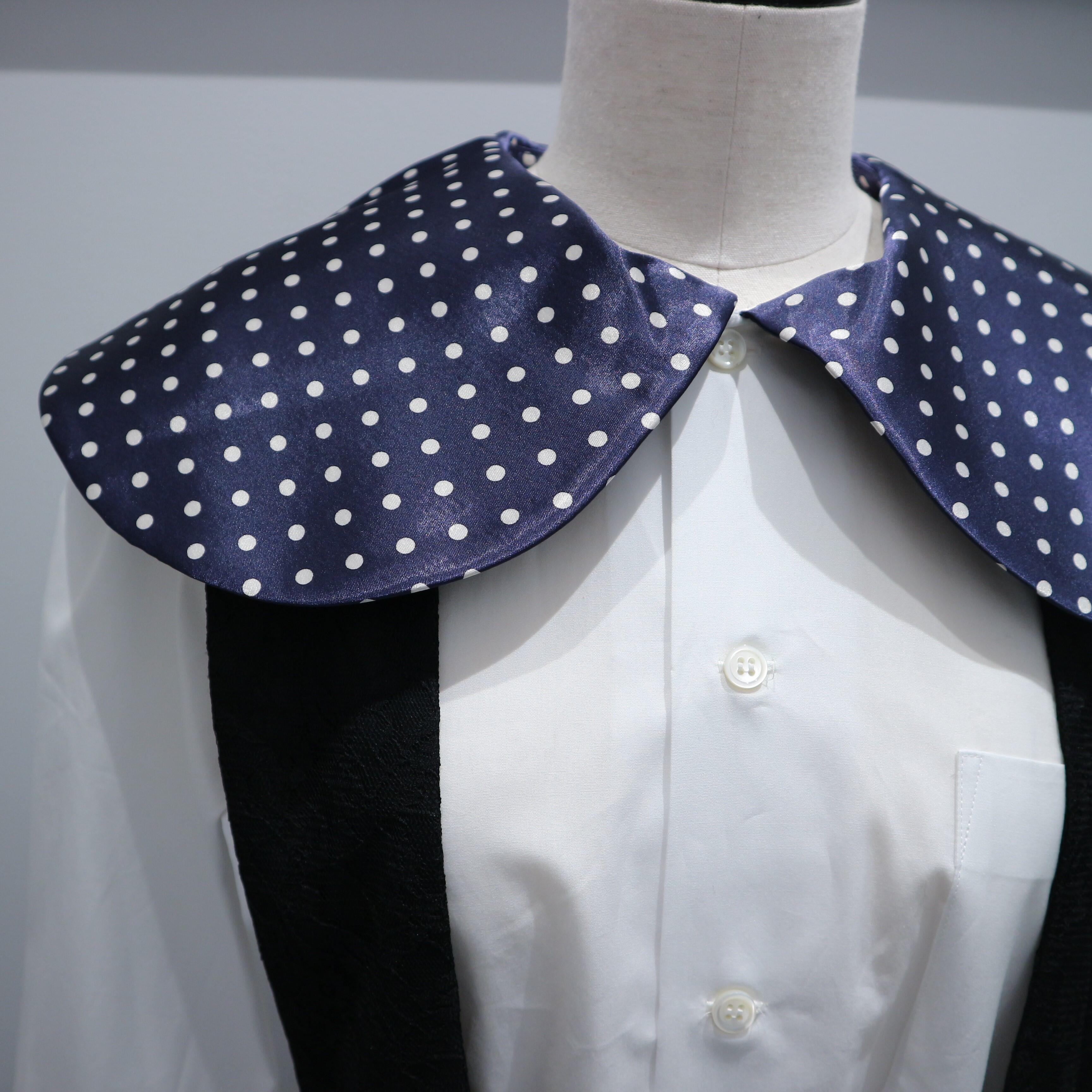 特徴的な丸襟は光沢感のある素材で、可愛らしいドット柄からブランドの雰囲気をしっかり感じられます。