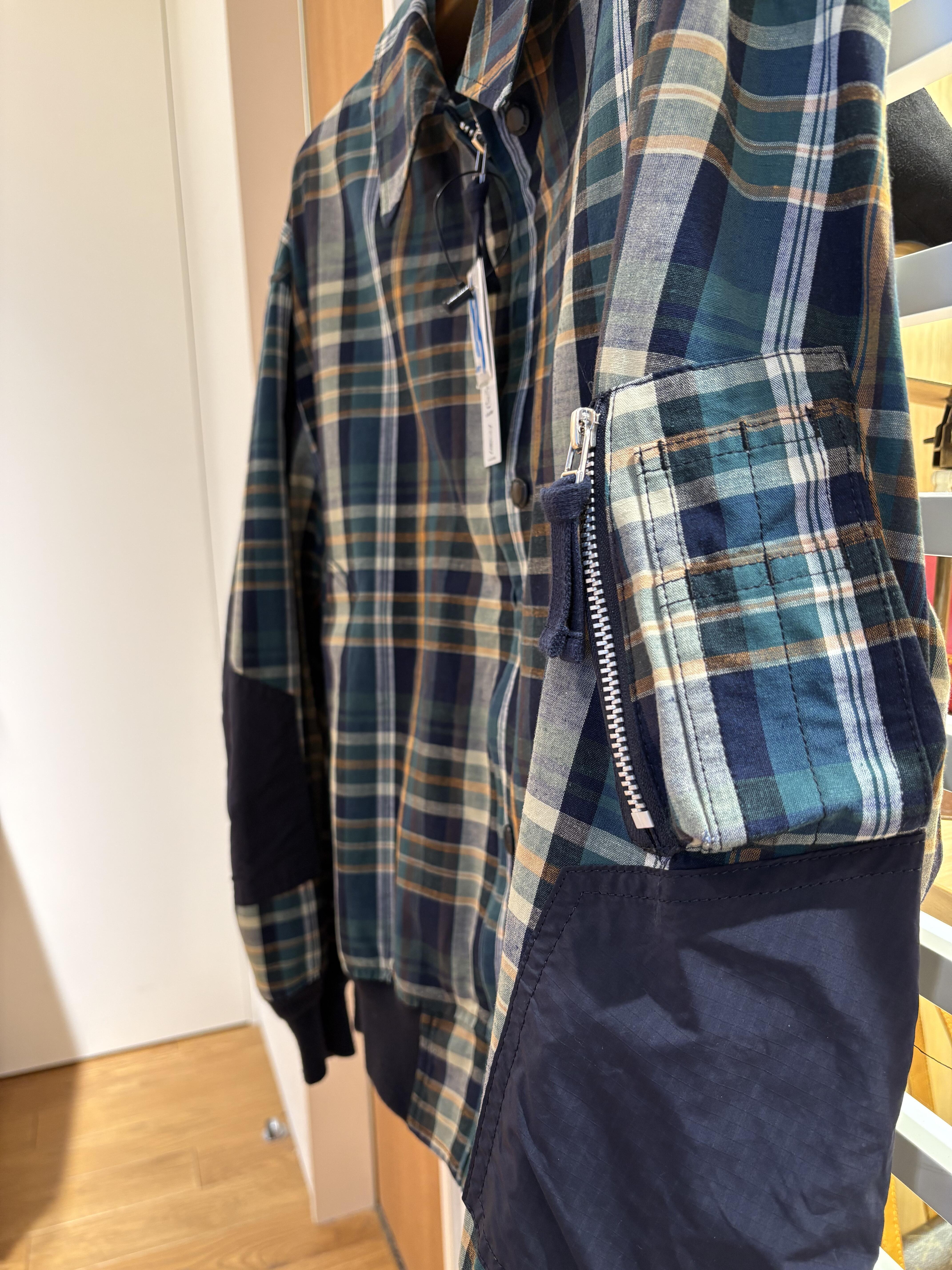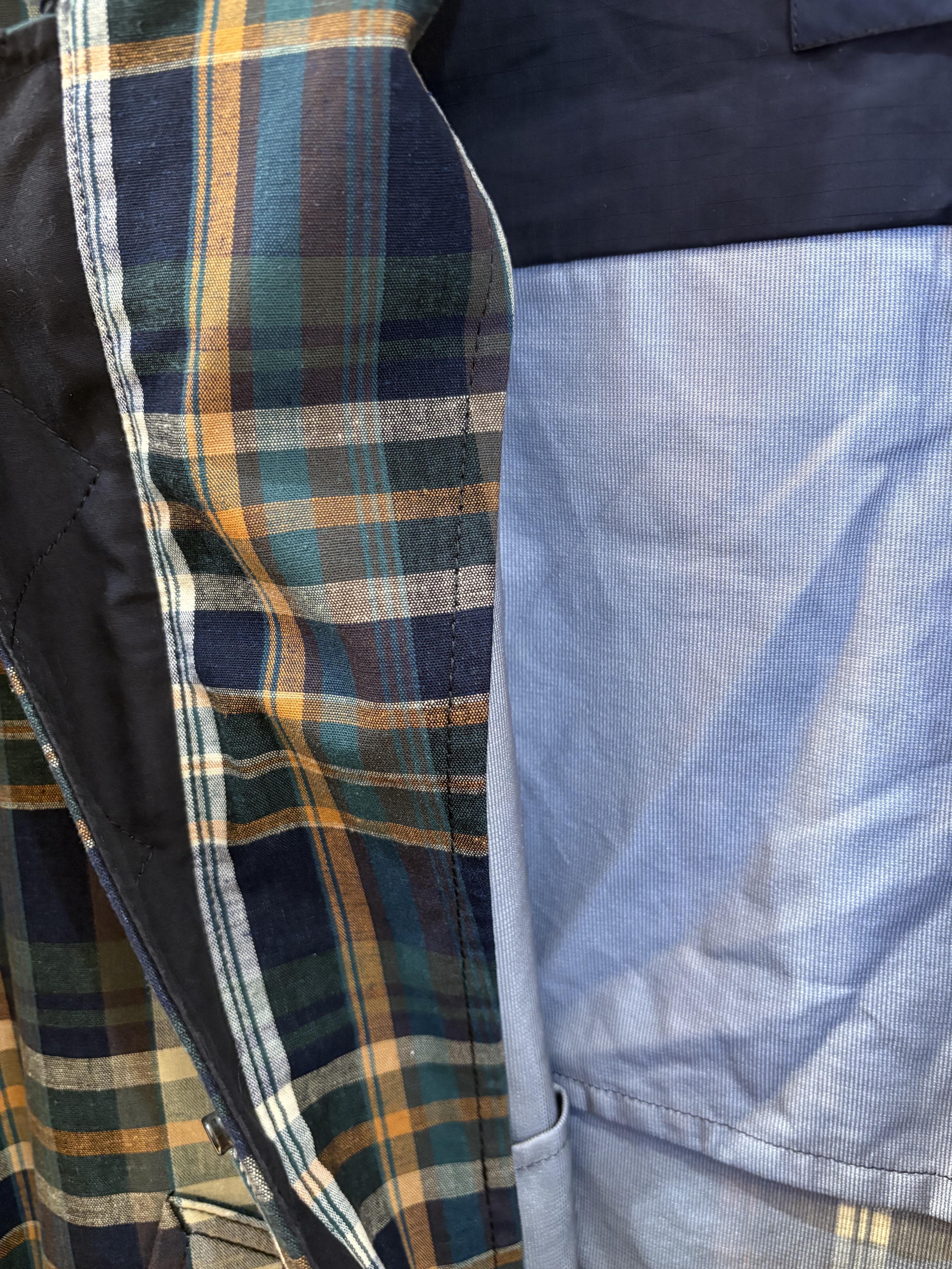 表地と裏地の質感やミリタリーのディテールとチェックなどギャップのある要素をオムらしくまとめた一着。
