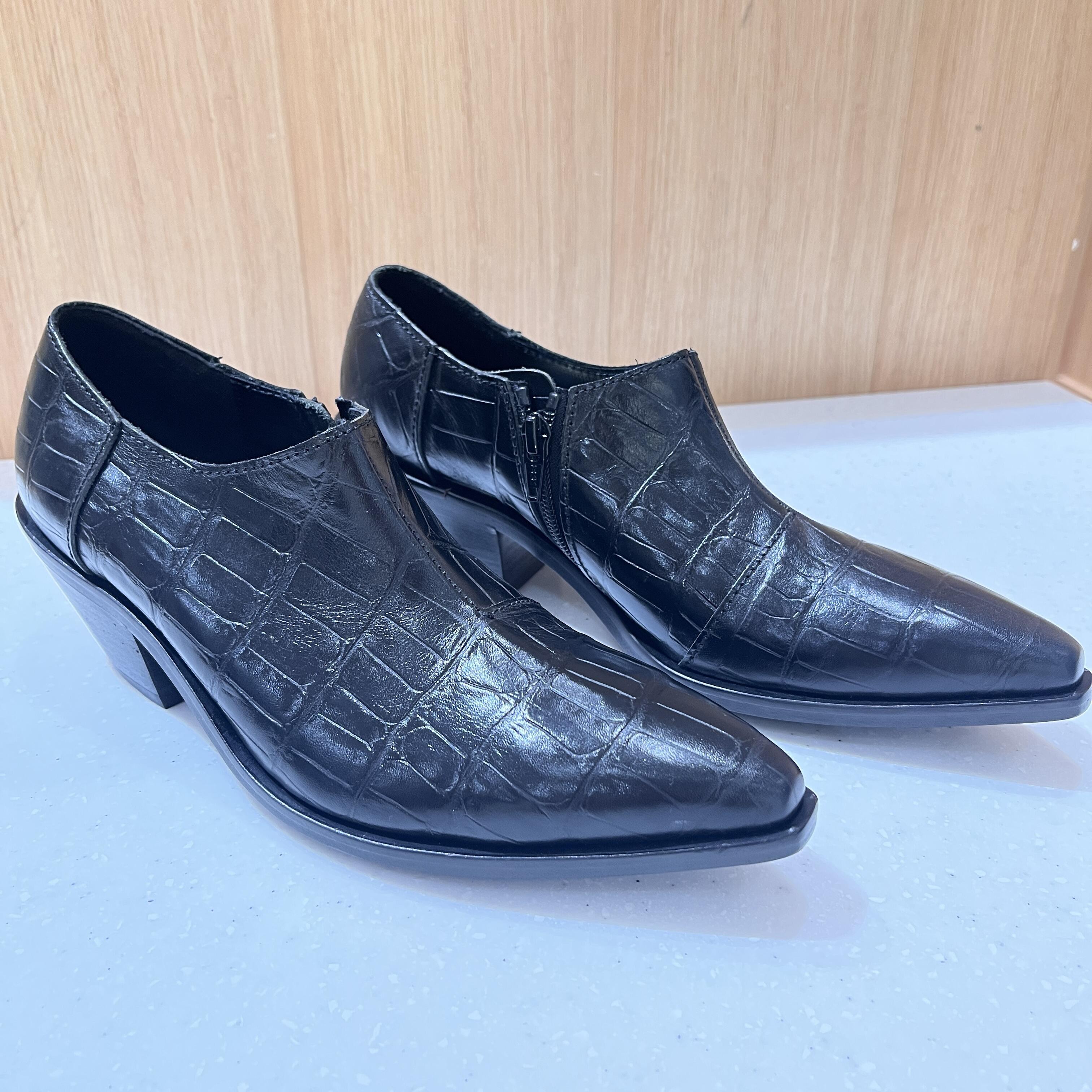 クロコダイル調のブラックは一足持っておくと色んなシーンで大活躍。程よいヒールの高さとフォルムの美しさで、普段のお洋服からオケージョンシーンまで相性ばっちりです。