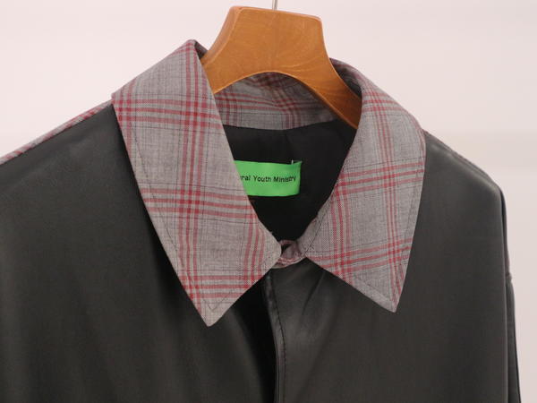 チェックとレザーの切り替えが何とも卓越なロングコート。