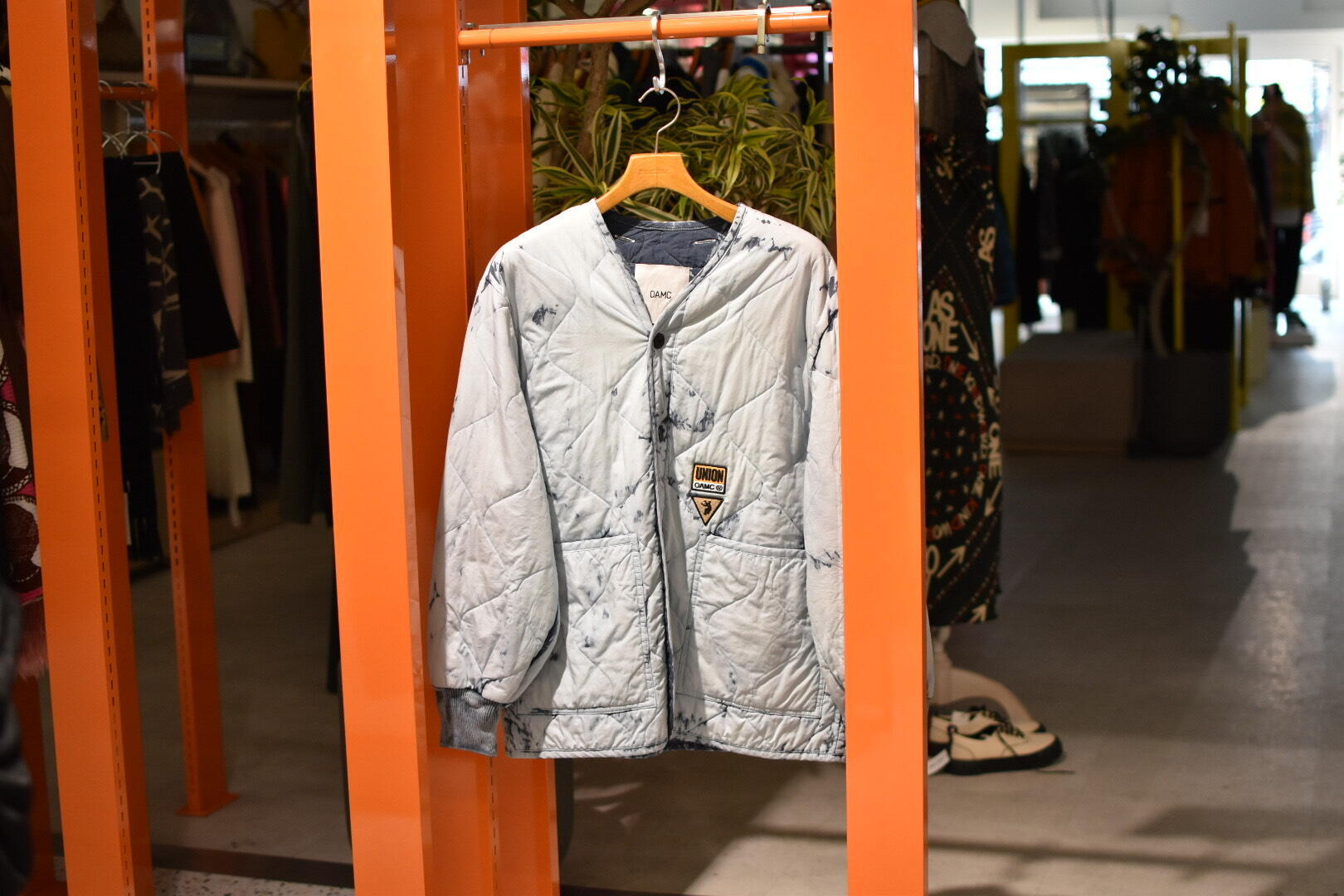 淡いブルーのタイダイ染めが印象的なキルティングジャケットで、