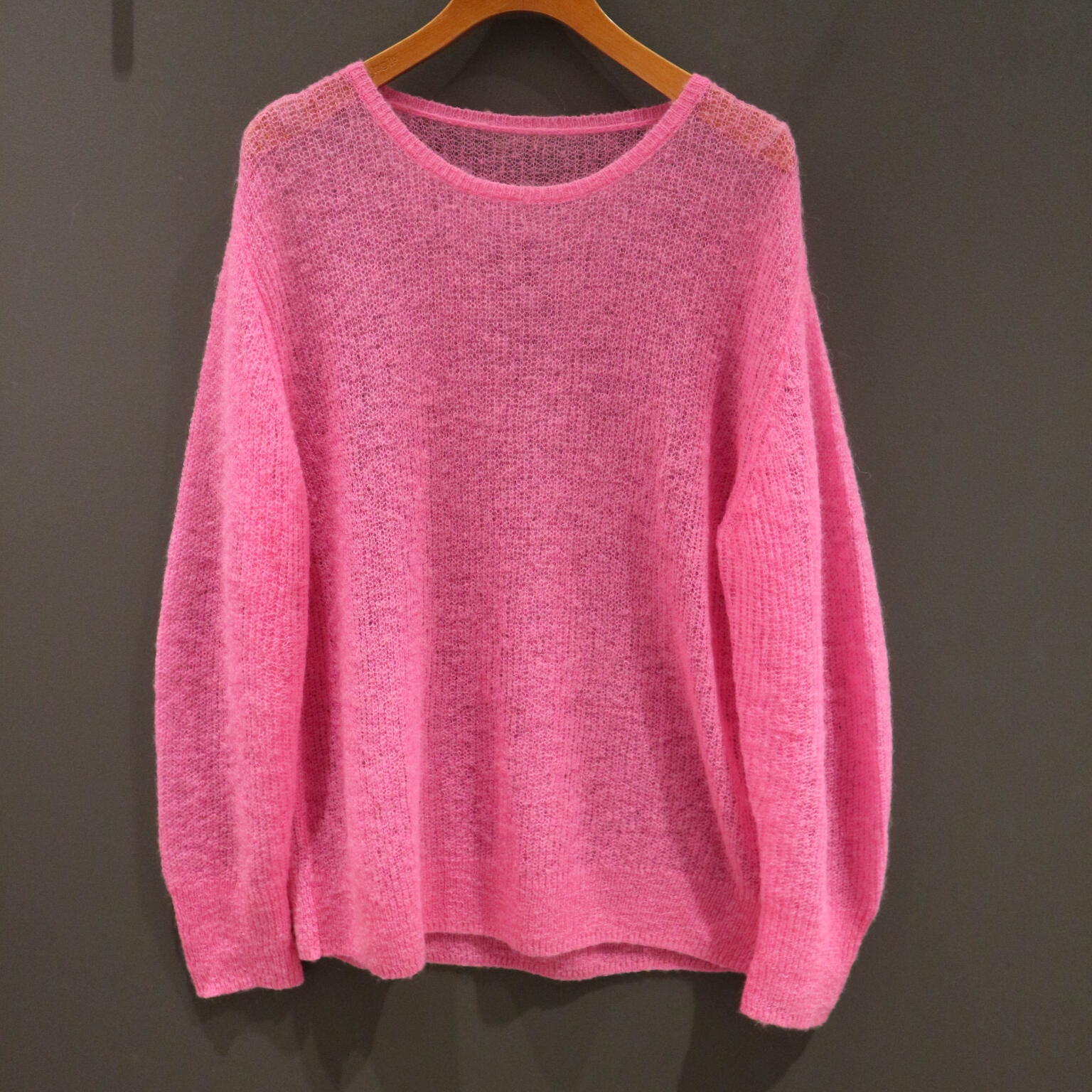 今年のトレンドカラーの濃いピンク色のシアーモヘアニットです。