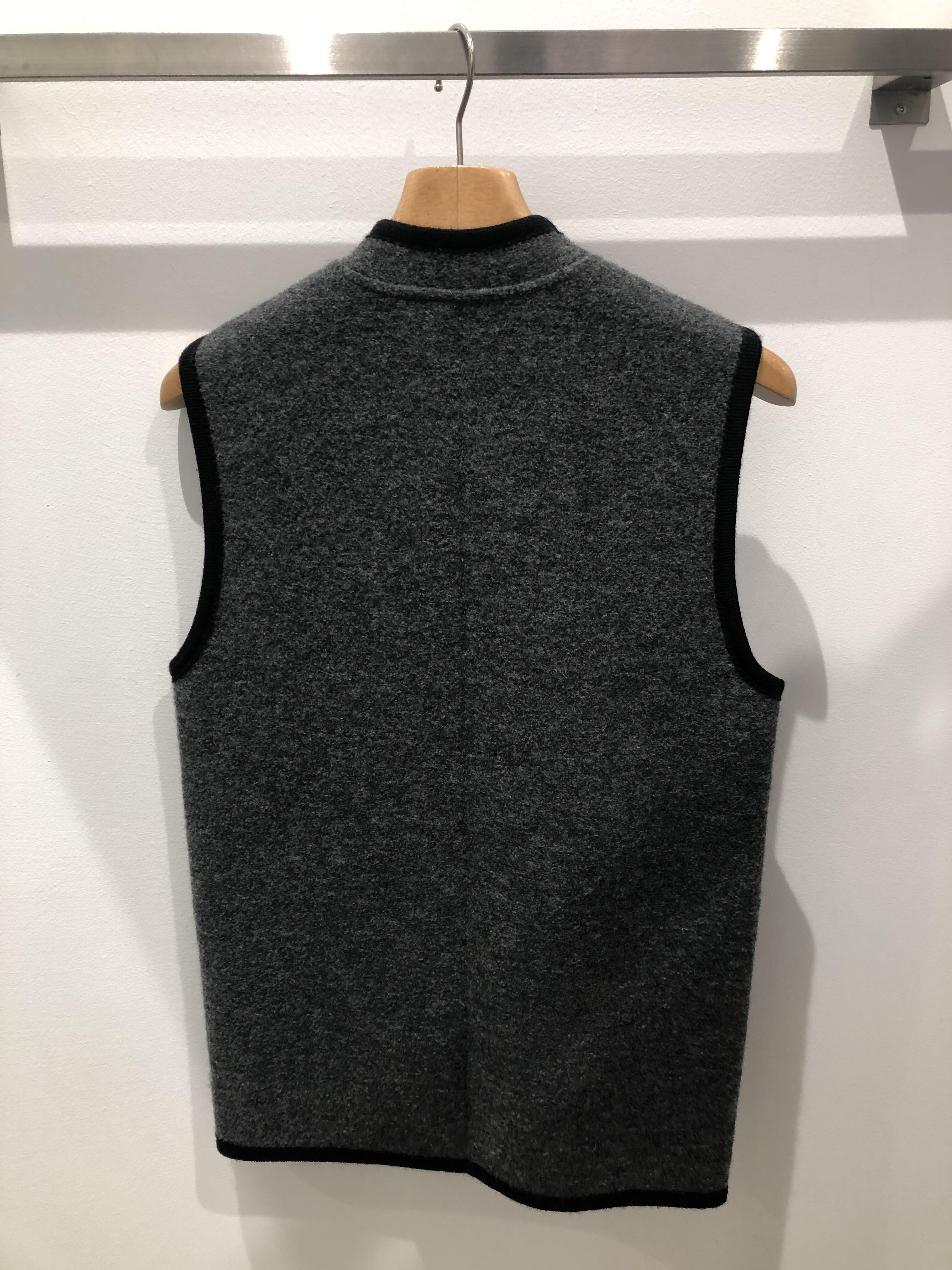 チロリアンベストと聞くと少し野暮ったいアイテムの印象がありますが、ここまですっきりと、それでいてピリッとモードな雰囲気が出るのはさすがの一言。