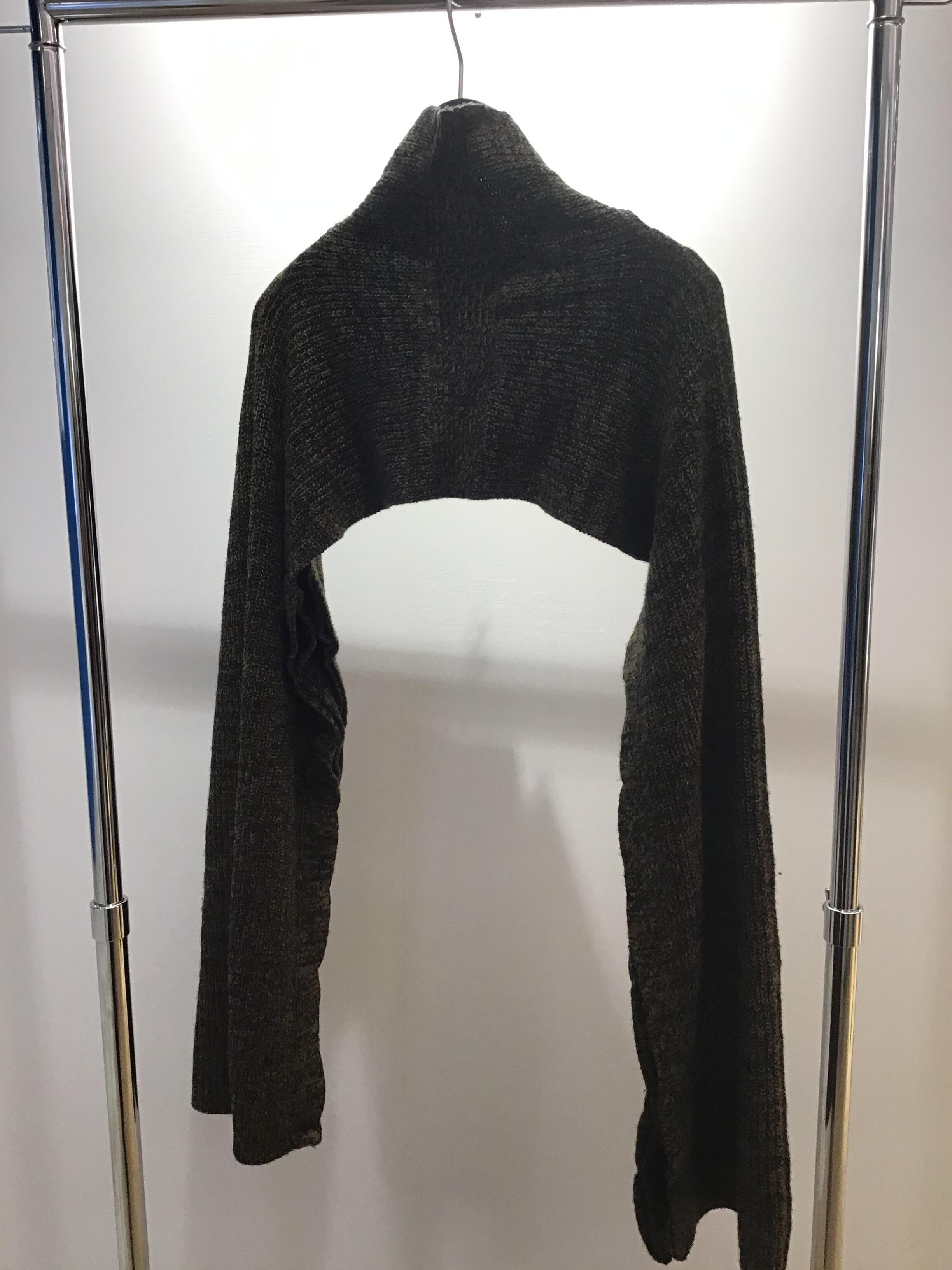 極端なショート丈と袖のボリュームをシンプルなワンピースでコーディネートするとボレロの様にデザイン性を楽しむことができます。