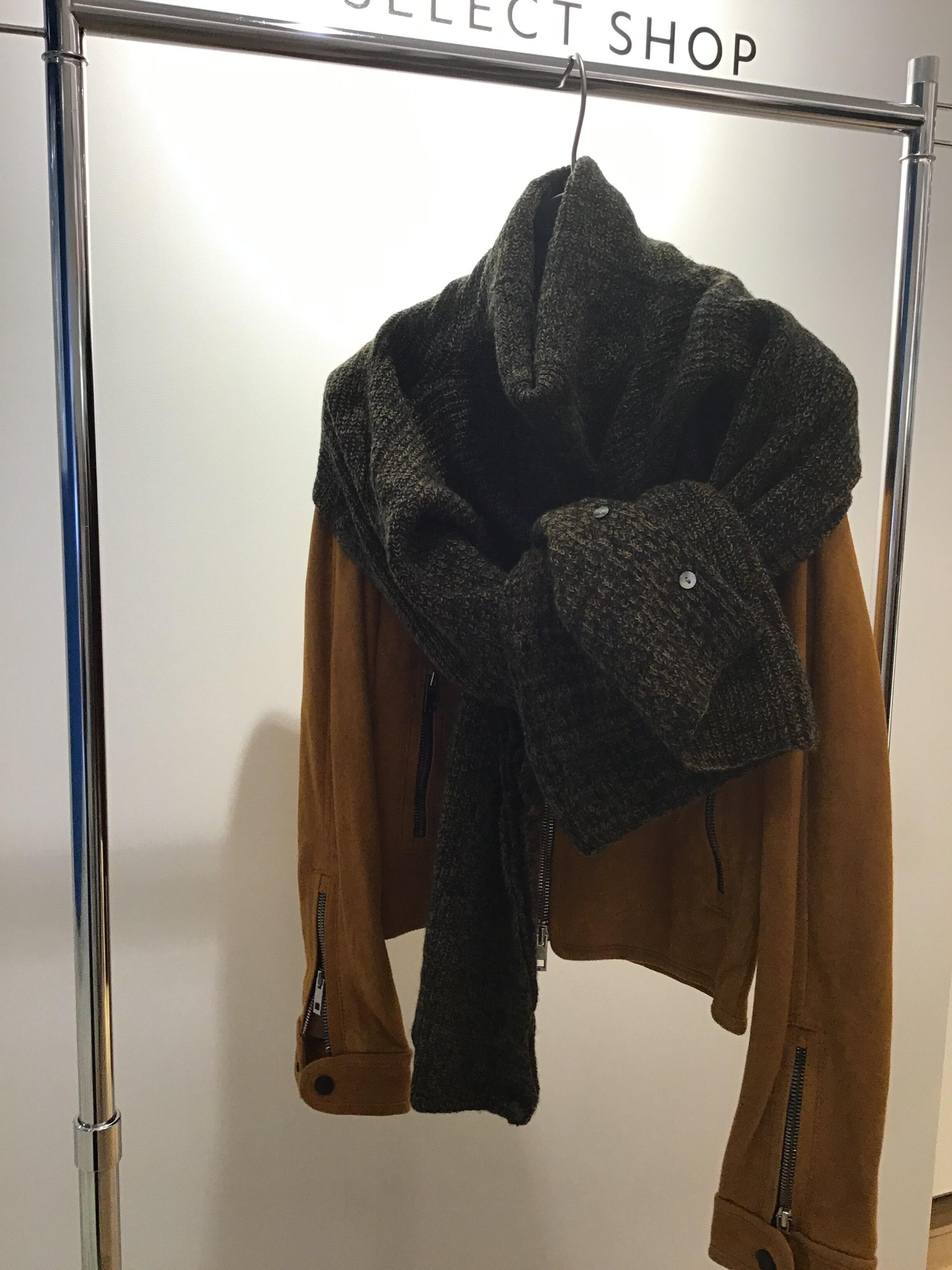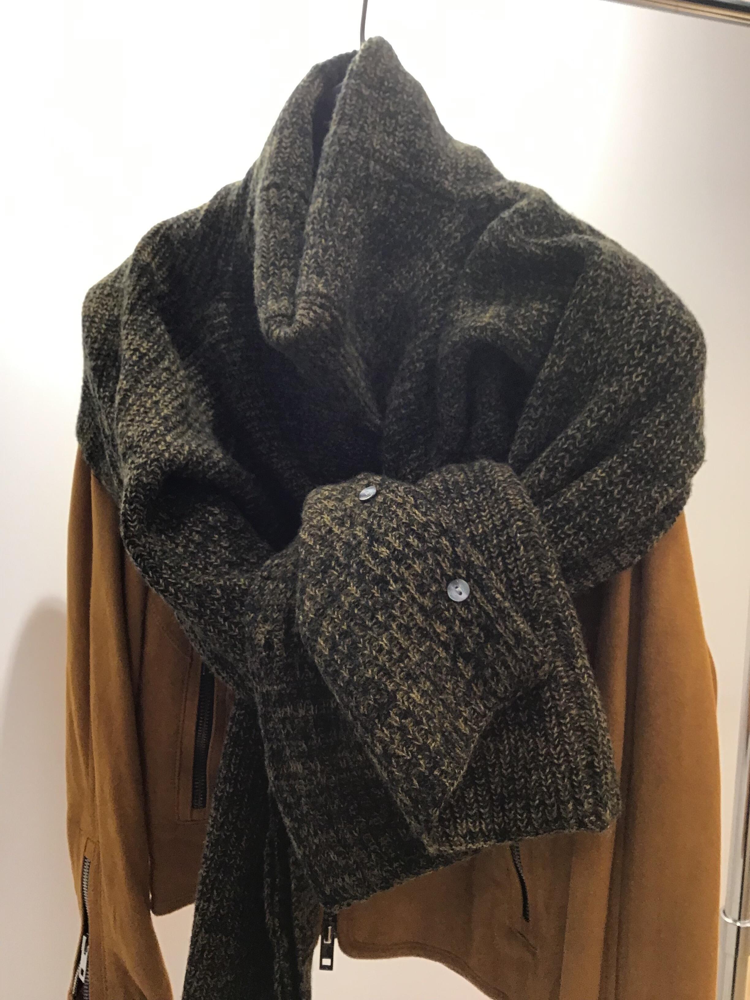袖を抜いてマフラーにしちゃうのもこちらのニットでしたら有りなんです。