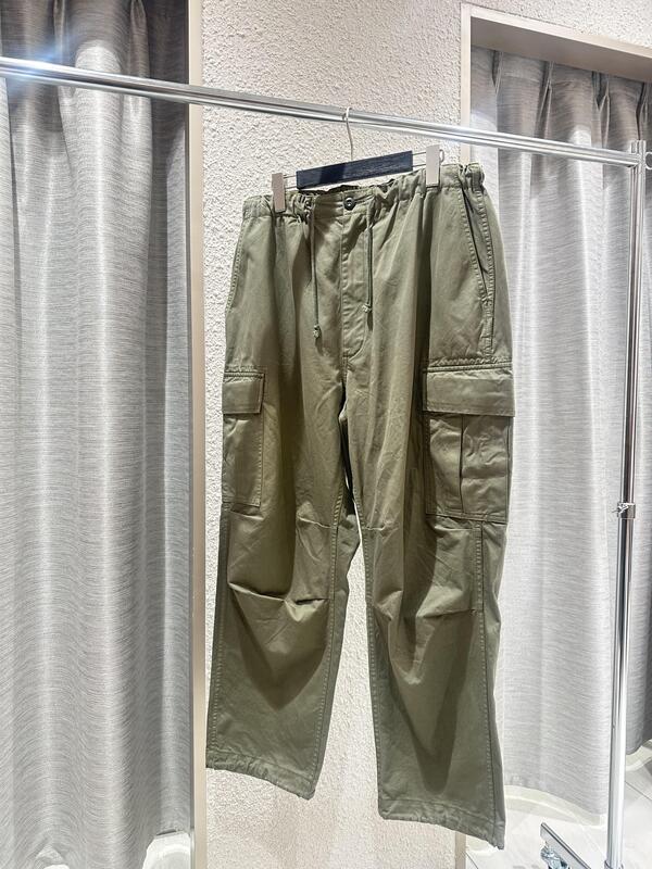軽やかで機能的な素材感とミリタリーディテールが融合したパンツ