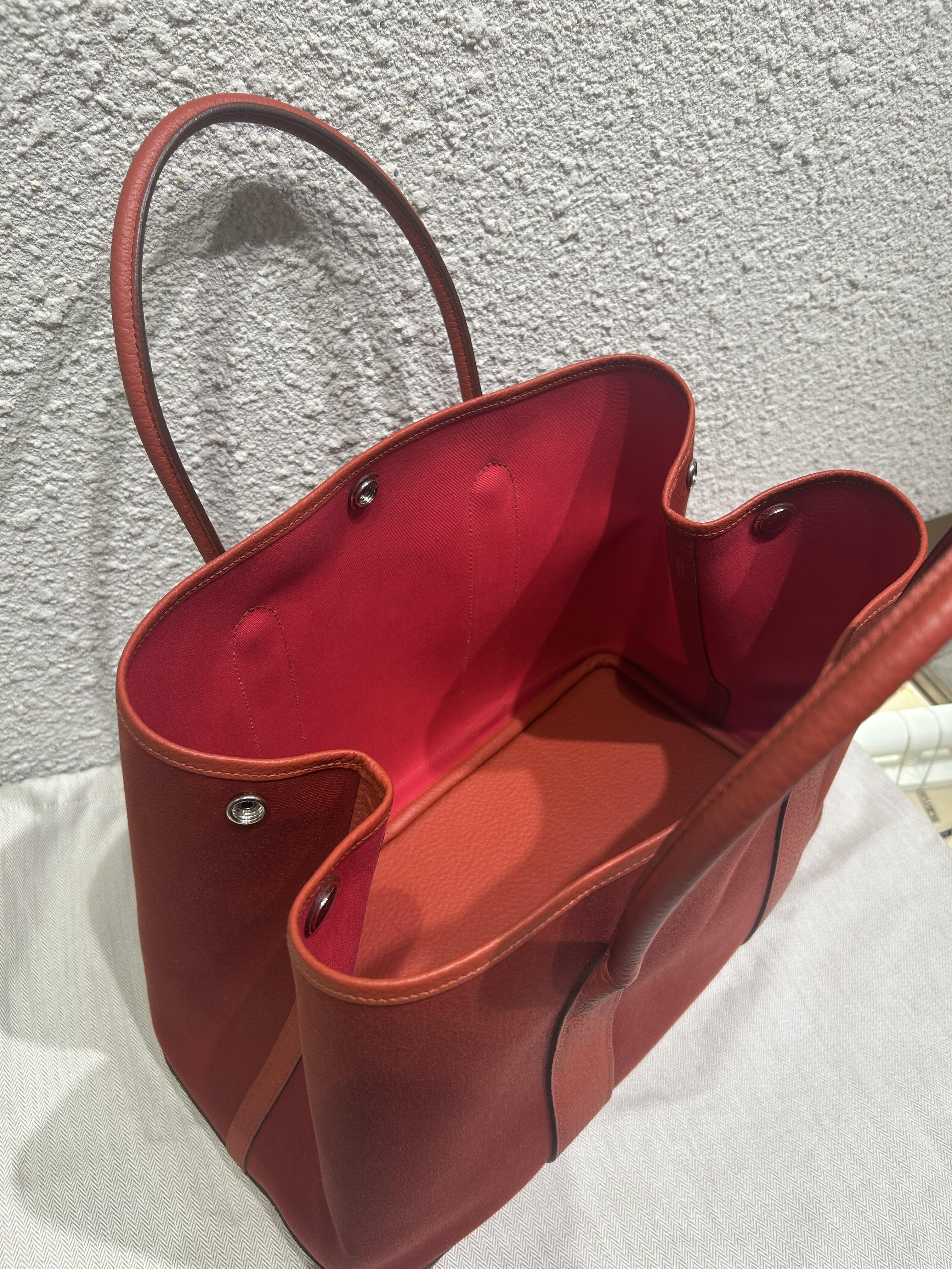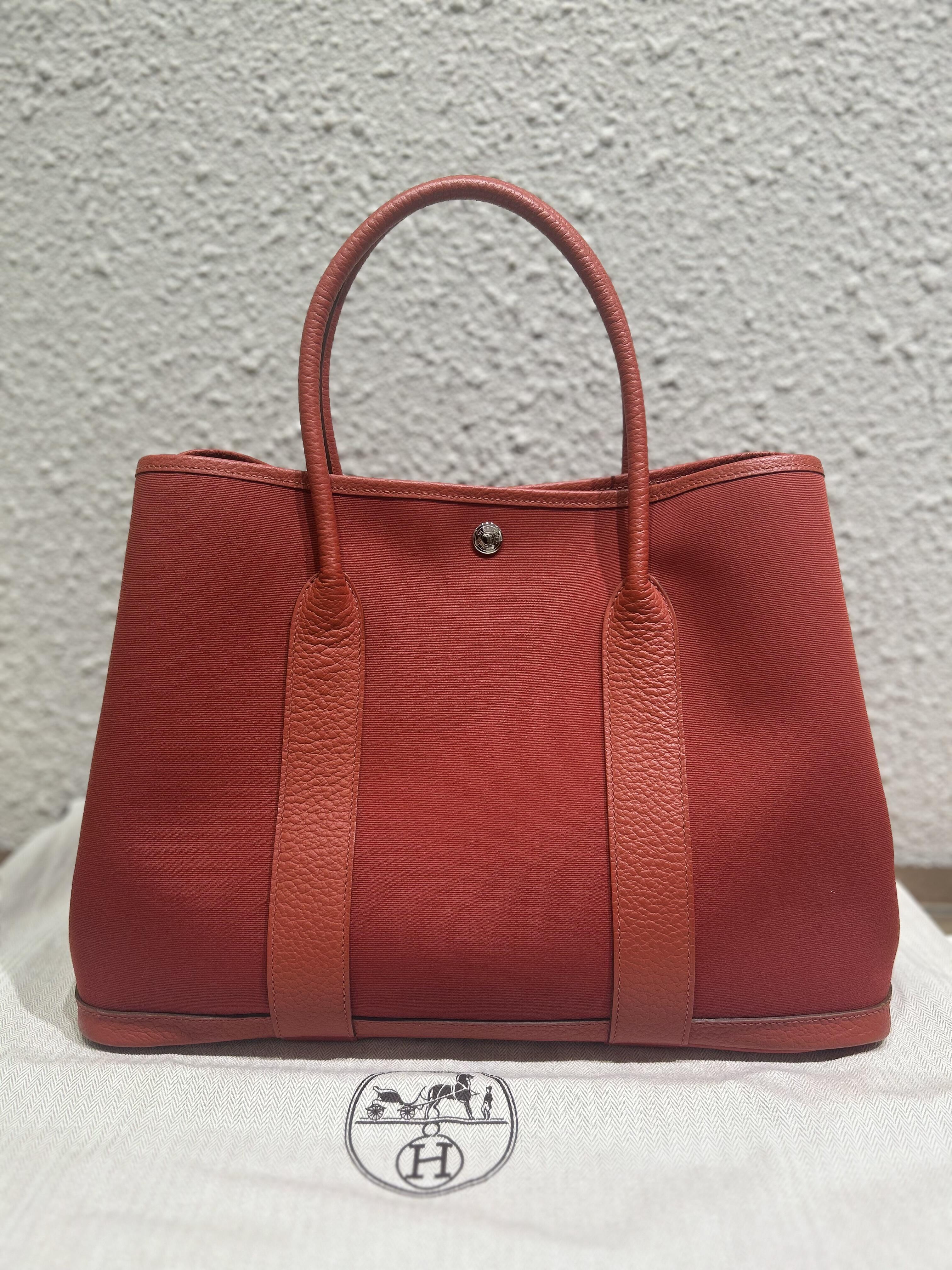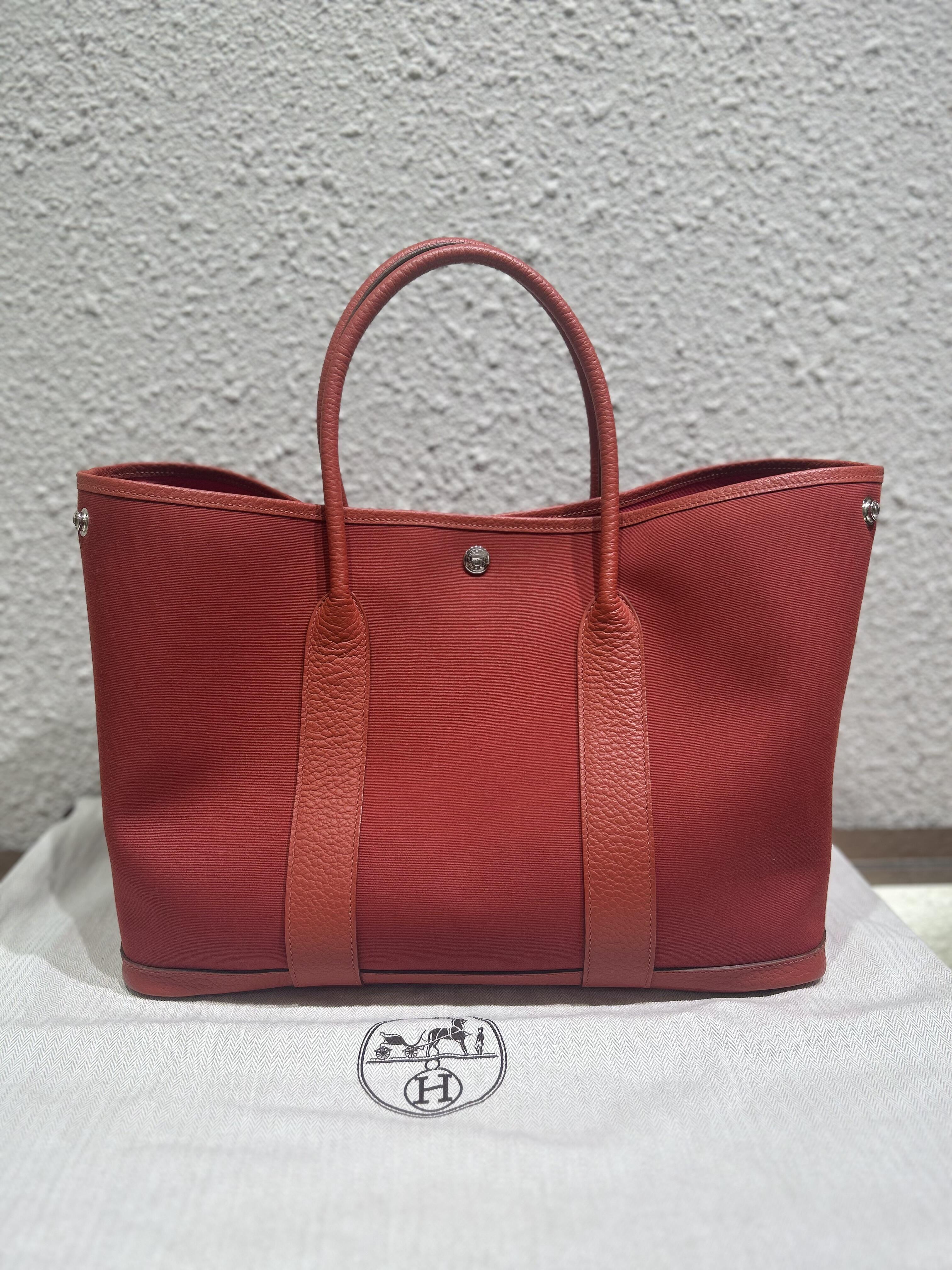エルメスといえば革製品のイメージがありますが、ガーデンパーティにはキャンバス×レザーのコンビが多く、幅広い年代の方から支持されているモデルです。
