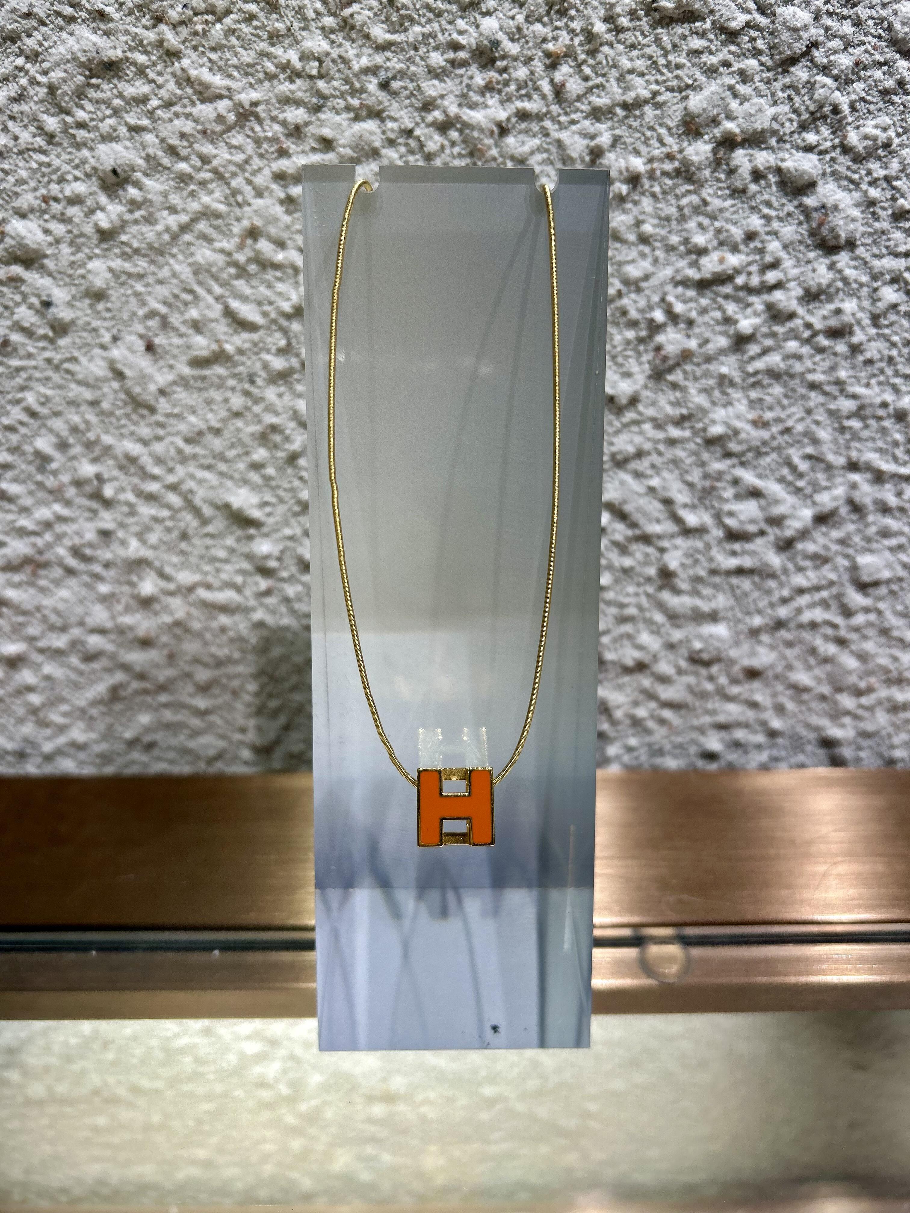 立体的なHキューブは一目でエルメスと分かりつつも、控えめなデザインで胸元をさりげなく彩ってくれます。