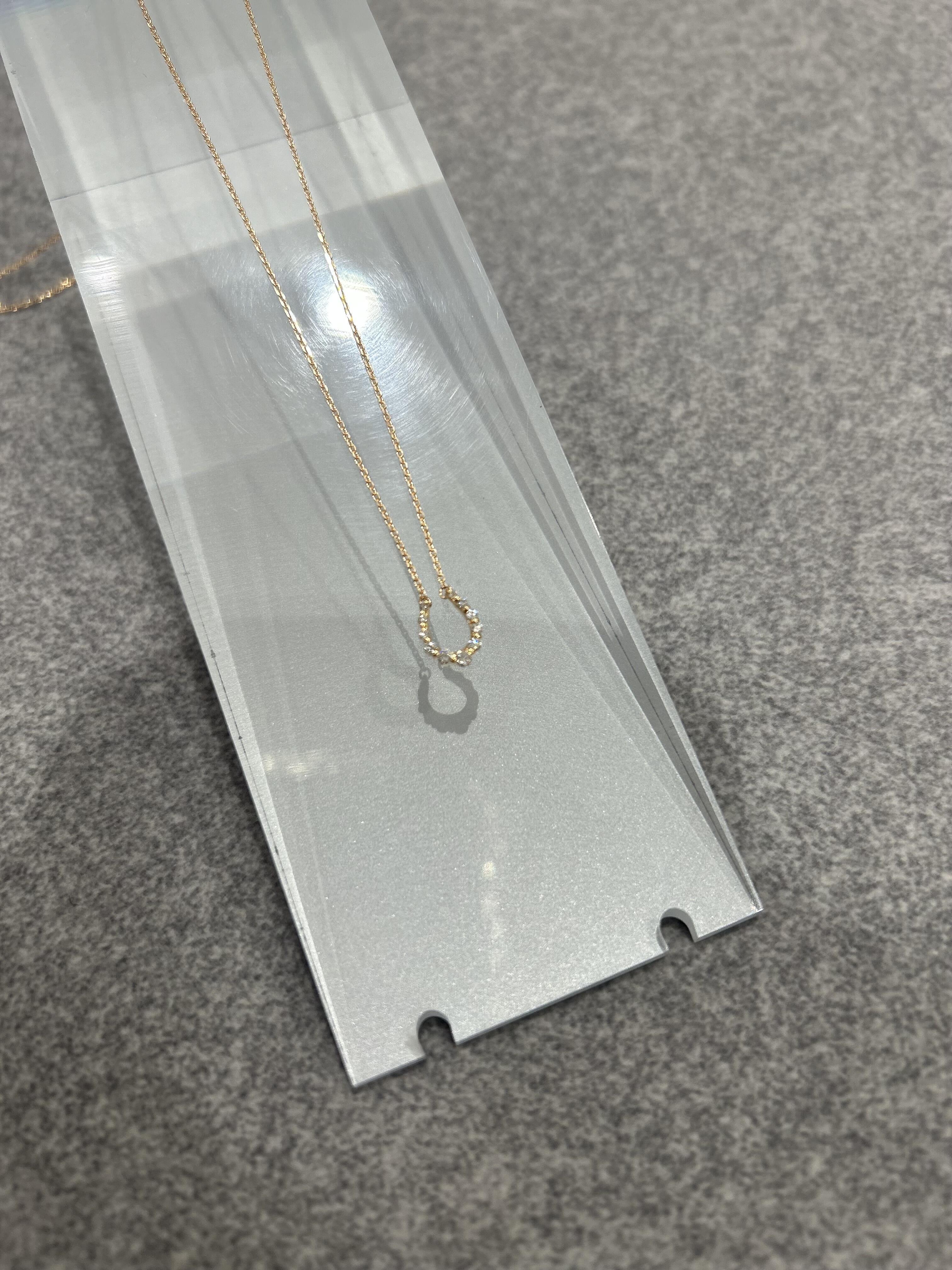 控え目なサイズ感ですが、ダイヤモンドの輝きが胸元できらりと美しく光ります。