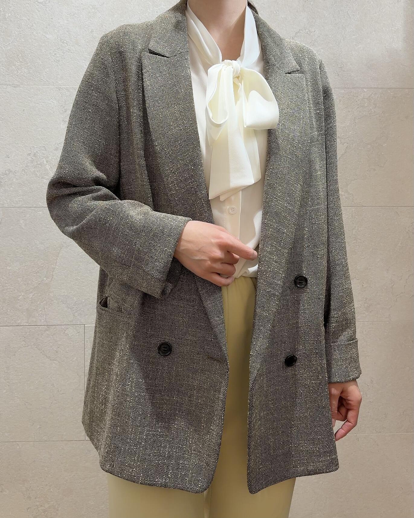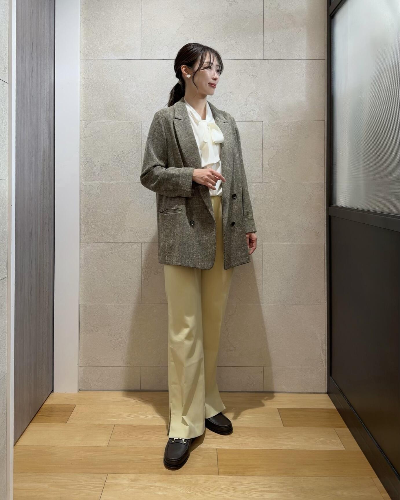 ジャケットがすっきりしている分、ブラウスはデザイン性のあるものがおすすめです!