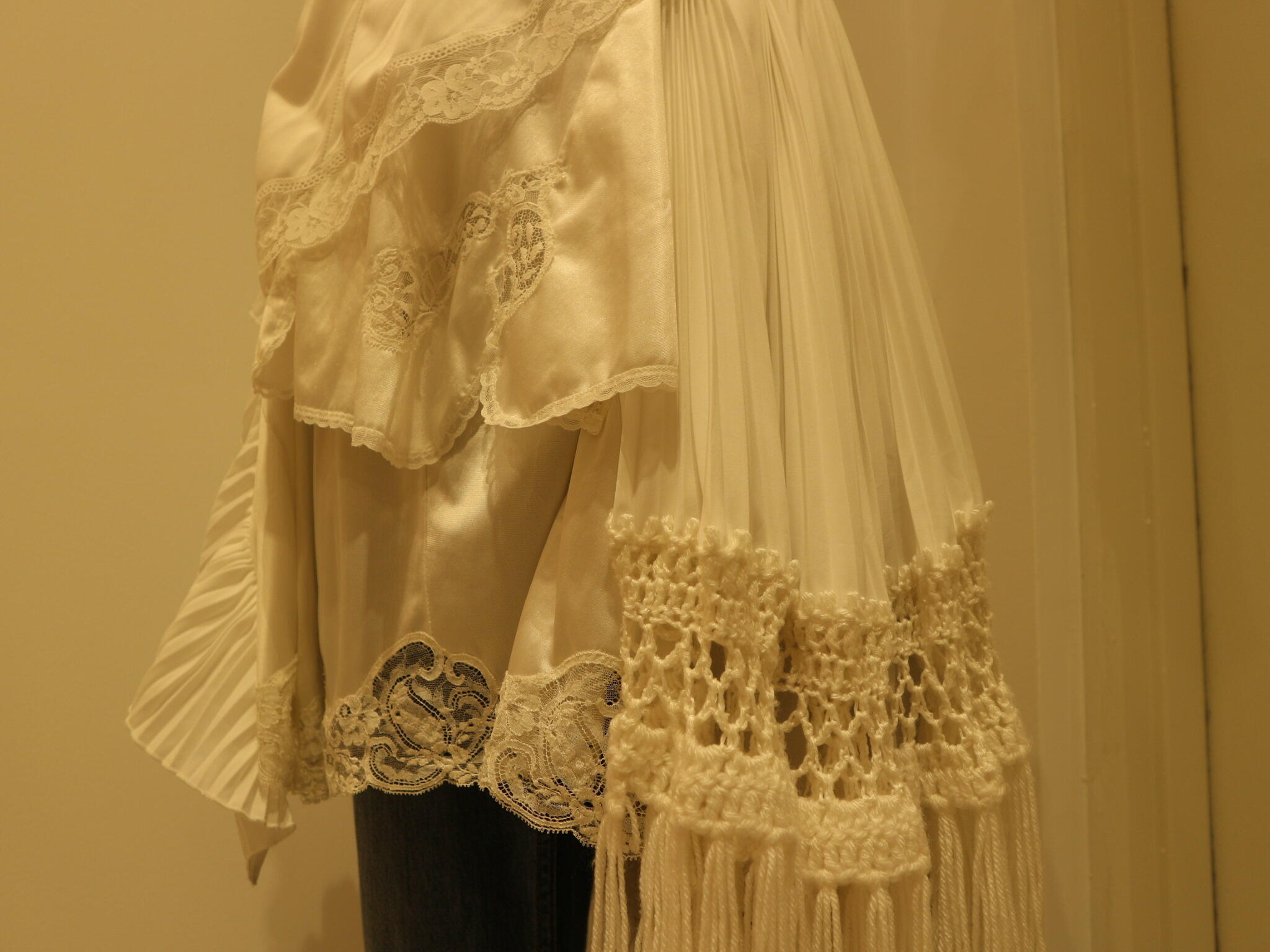 レースやフリル、フリンジなど白一色ですがあらゆる加工が施されており、前後左右で違った表情を見せてくれます。