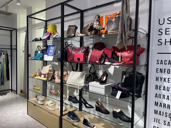 ルイヴィトンで固められたコーナー。横浜店でも人気なヴィトンのバッグと、同系色のアイテムをまとめて上品でハイセンスなコーナーが右上に。