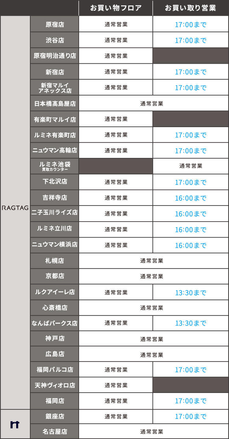 いつもRAGTAG、rtをご利用いただきありがとうございます。