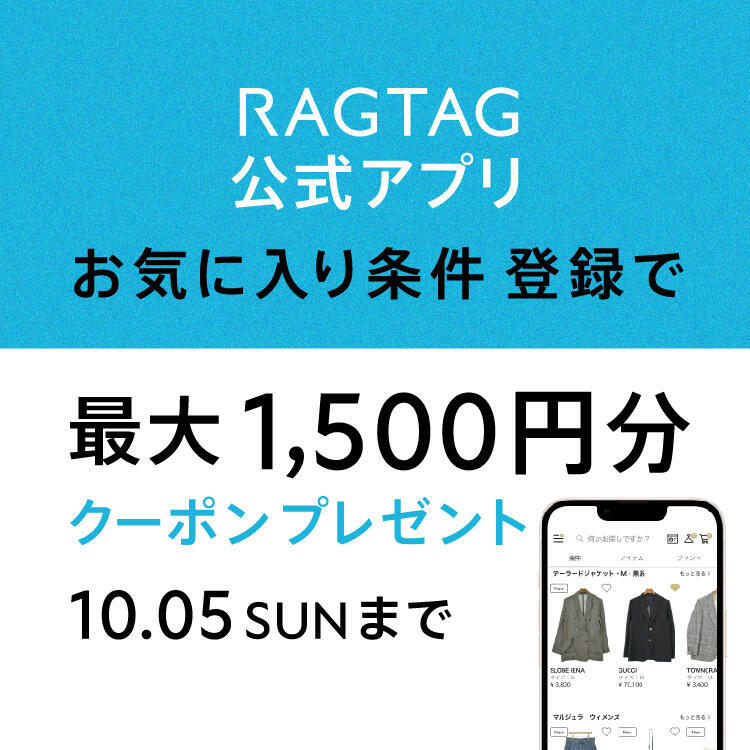 キャンペーン期間中に「お気に入り条件」を追加いただいた方限定で、RAGTAG・rt全店、RAGTAG Onlineで使える 1,000円OFFアプリクーポンを後日プレゼント!