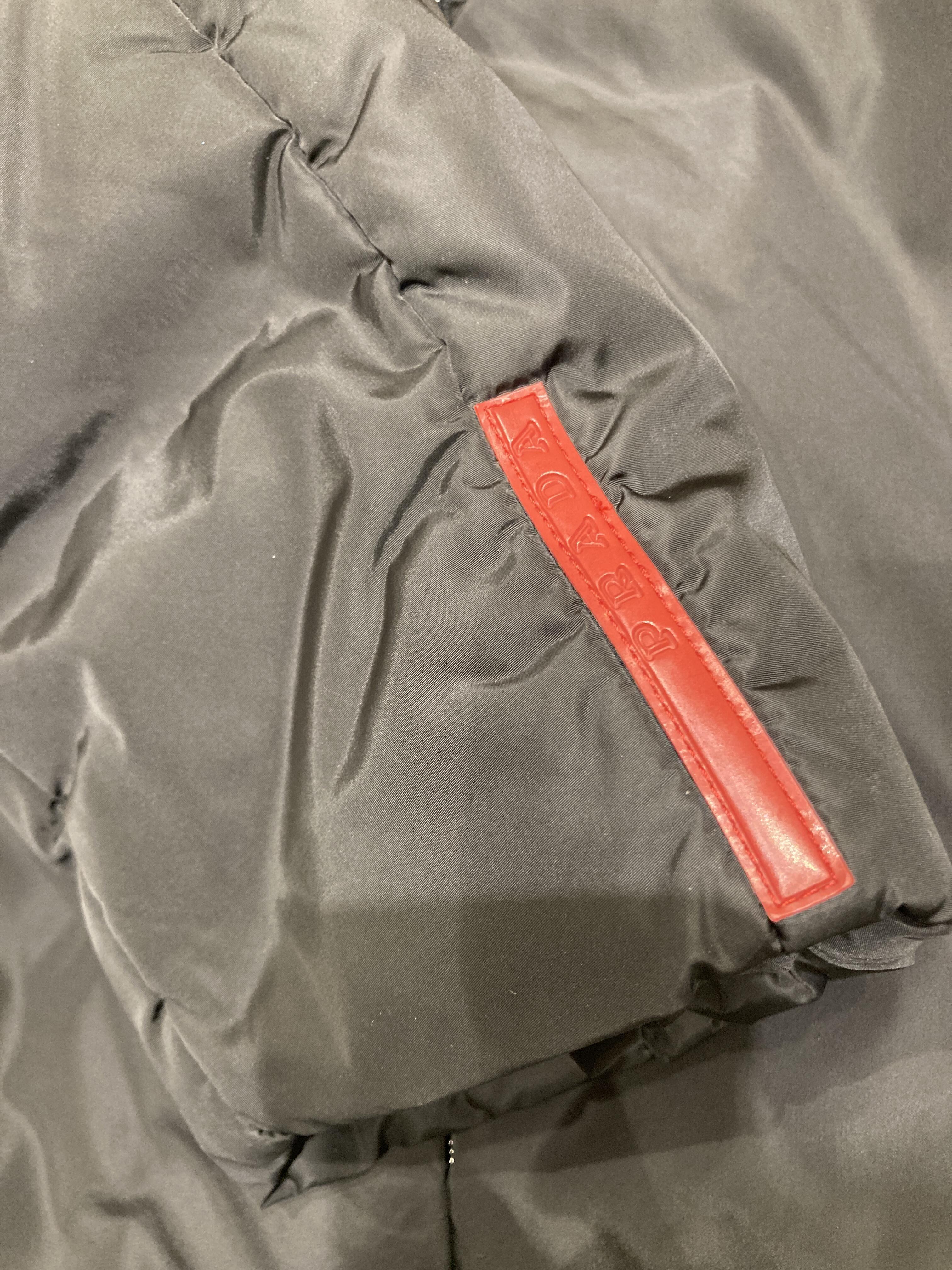 PRADASPORTSはPRADAのスポーツラインです。ファッション性と機能性を兼ね備えたカジュアルなデザインのアイテムを展開しています。そのため普段着としてでもサラッと着やすいラインになっています。PRADASPORTSの特徴は何といってもこの赤いラインのタグです。