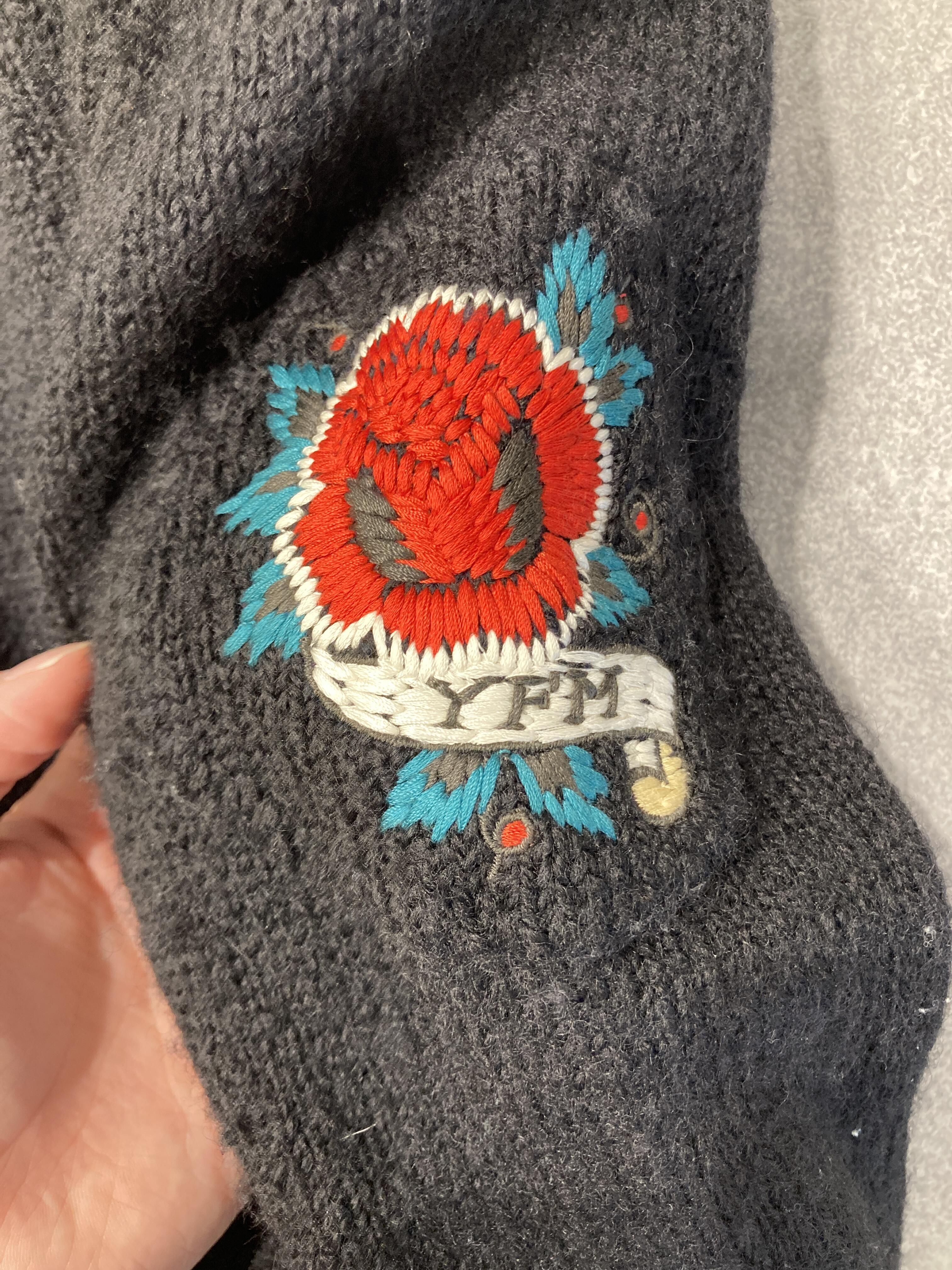 ウール面のほうは、柔らかく厚みのあるニット素材で落ち着いた印象の中に映える刺繍デザイン。