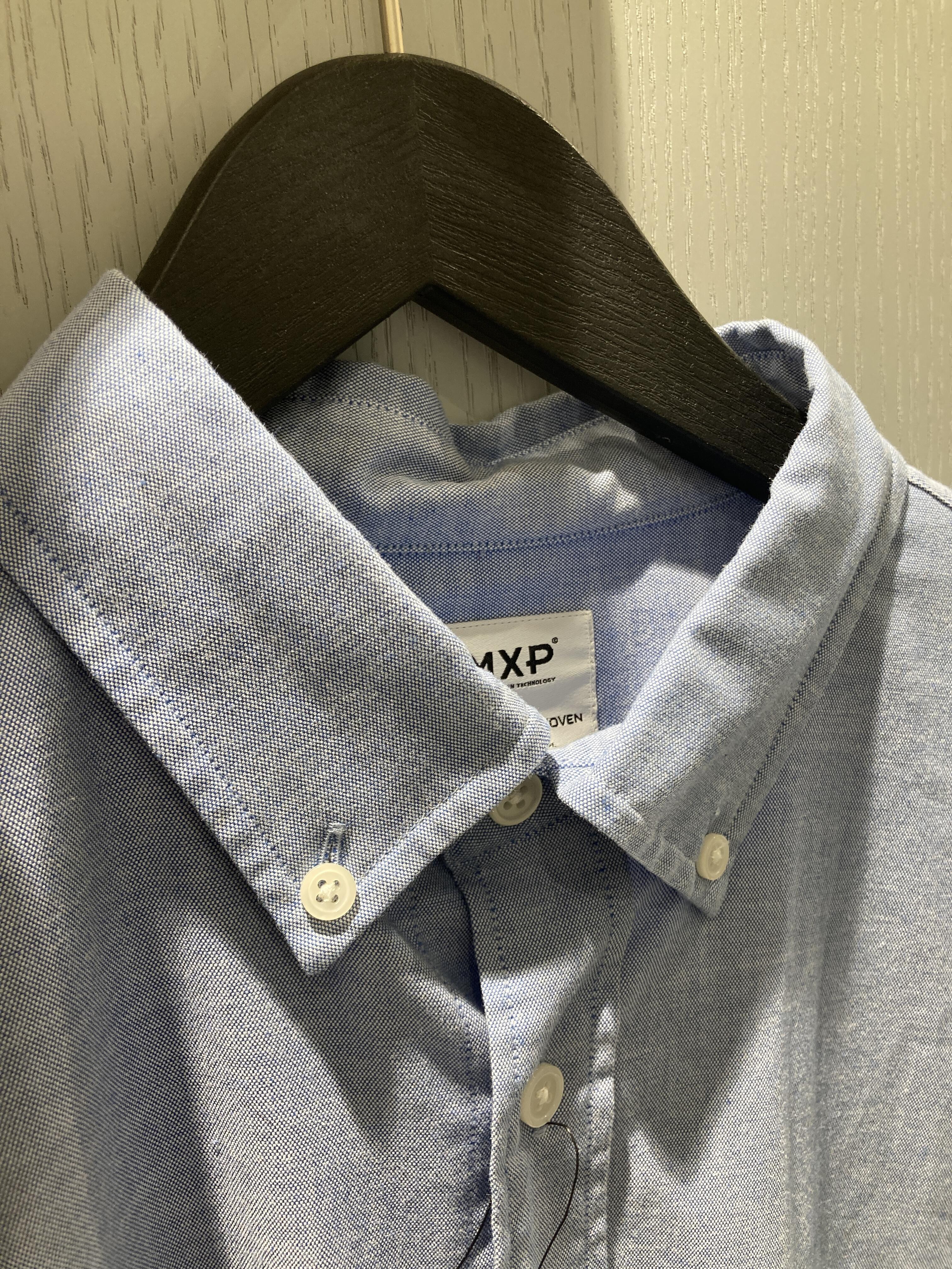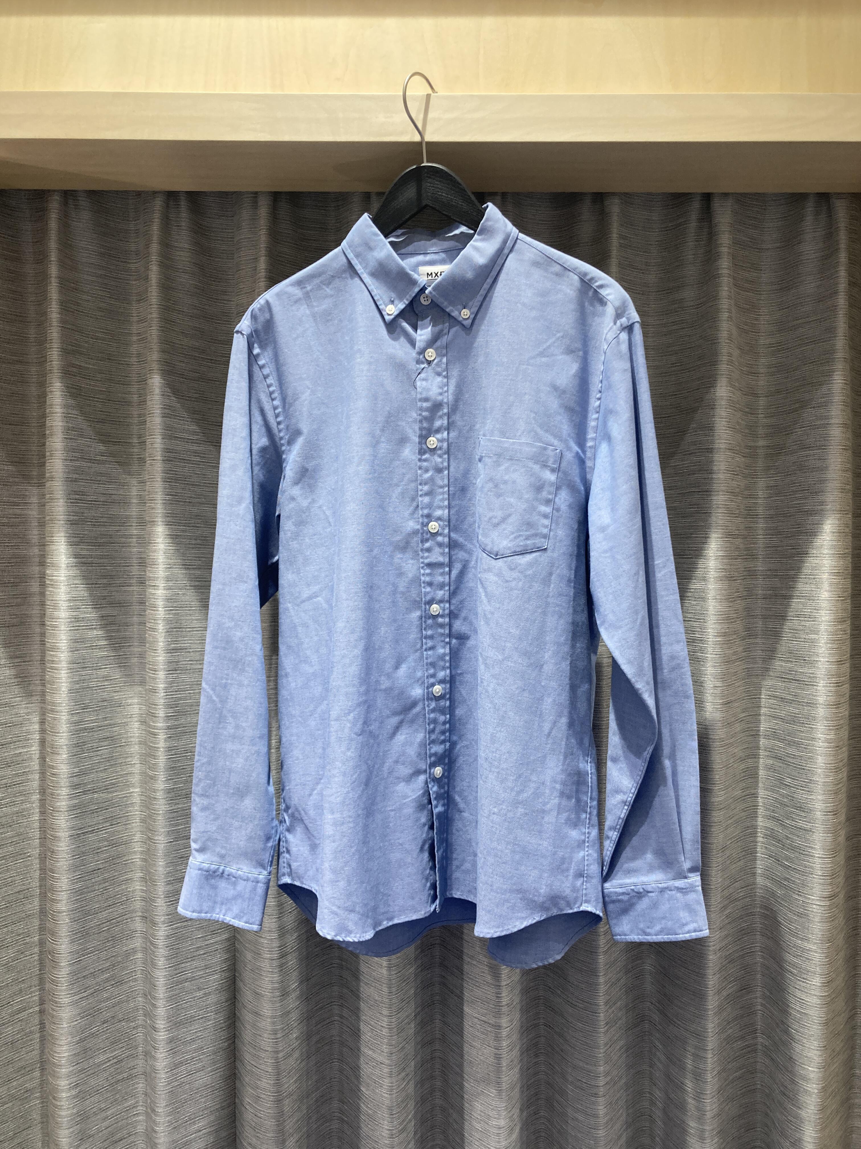 一見すると、クリーンでベーシックなスカイブルーのボタンダウンシャツ。ですが、機能派シャツなんです。