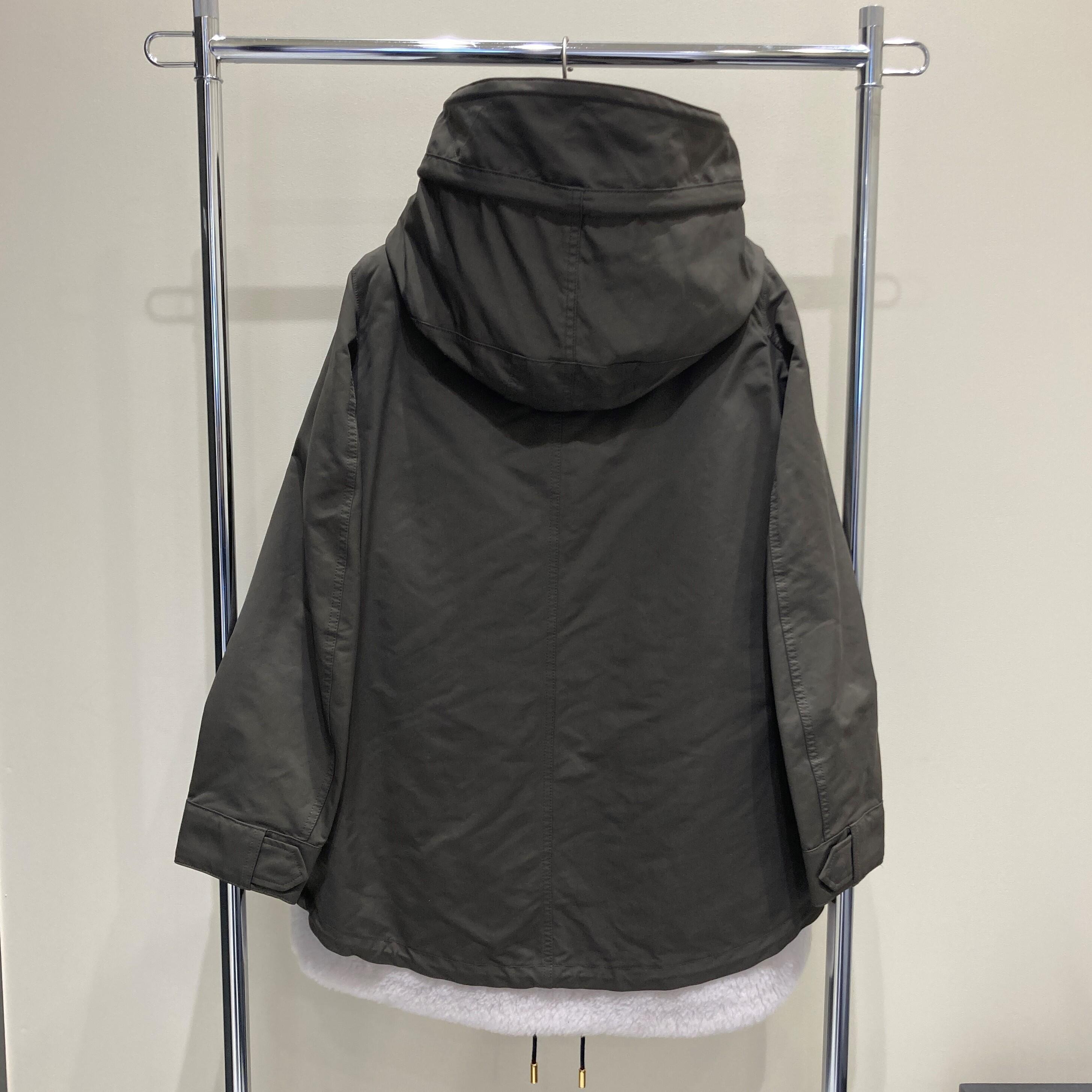 フード端にワイヤーを使用しているため綺麗なシルエットを保つことができます。