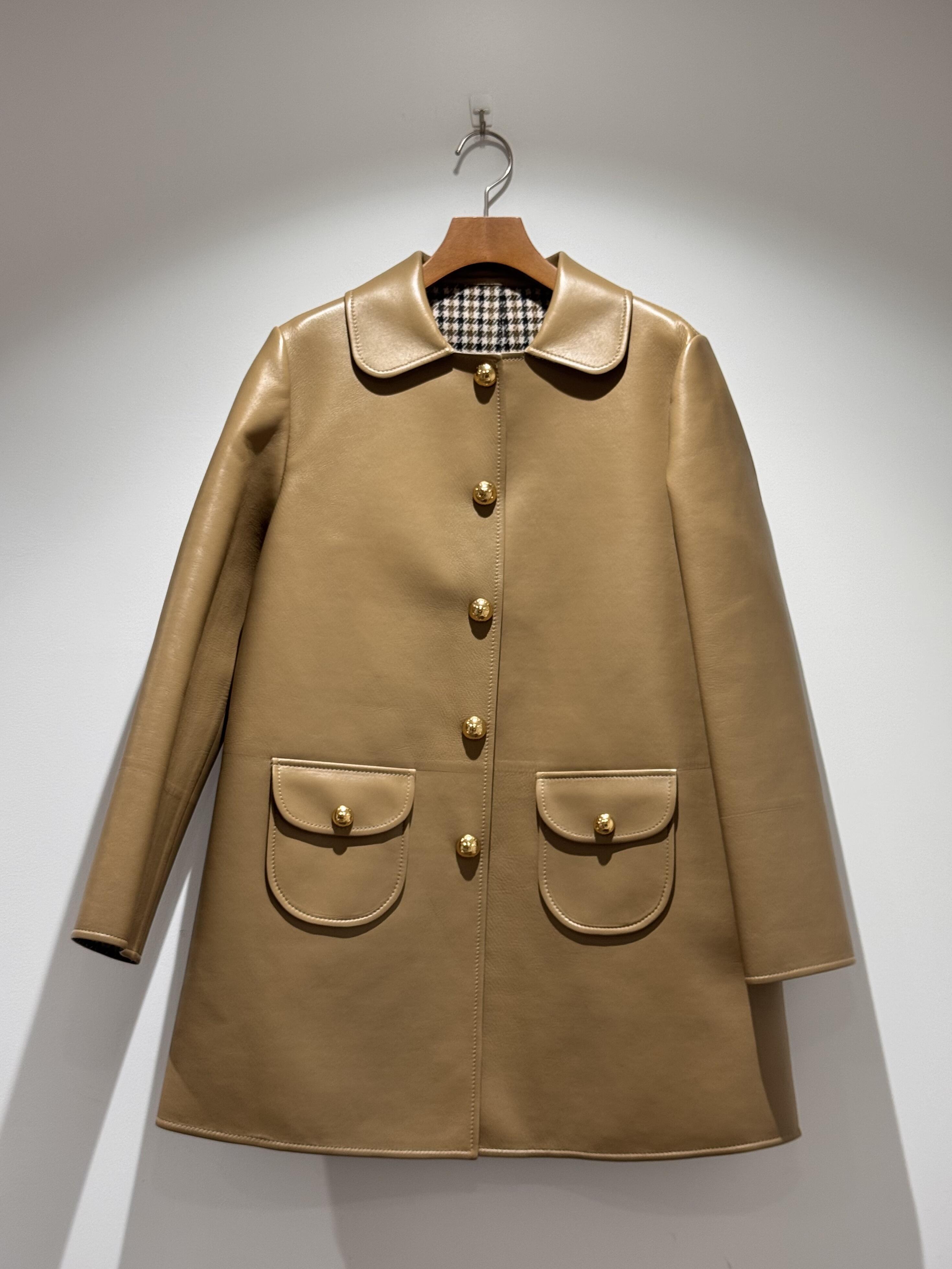 高級感とクラシックな雰囲気に溢れたこちらのコートは2024年秋冬のもの。シンプルかつ洗練されたデザインにトリオンフがあしらわれたゴールドボタンが映えます。裏地の千鳥格子もとても可愛いです。![]()
