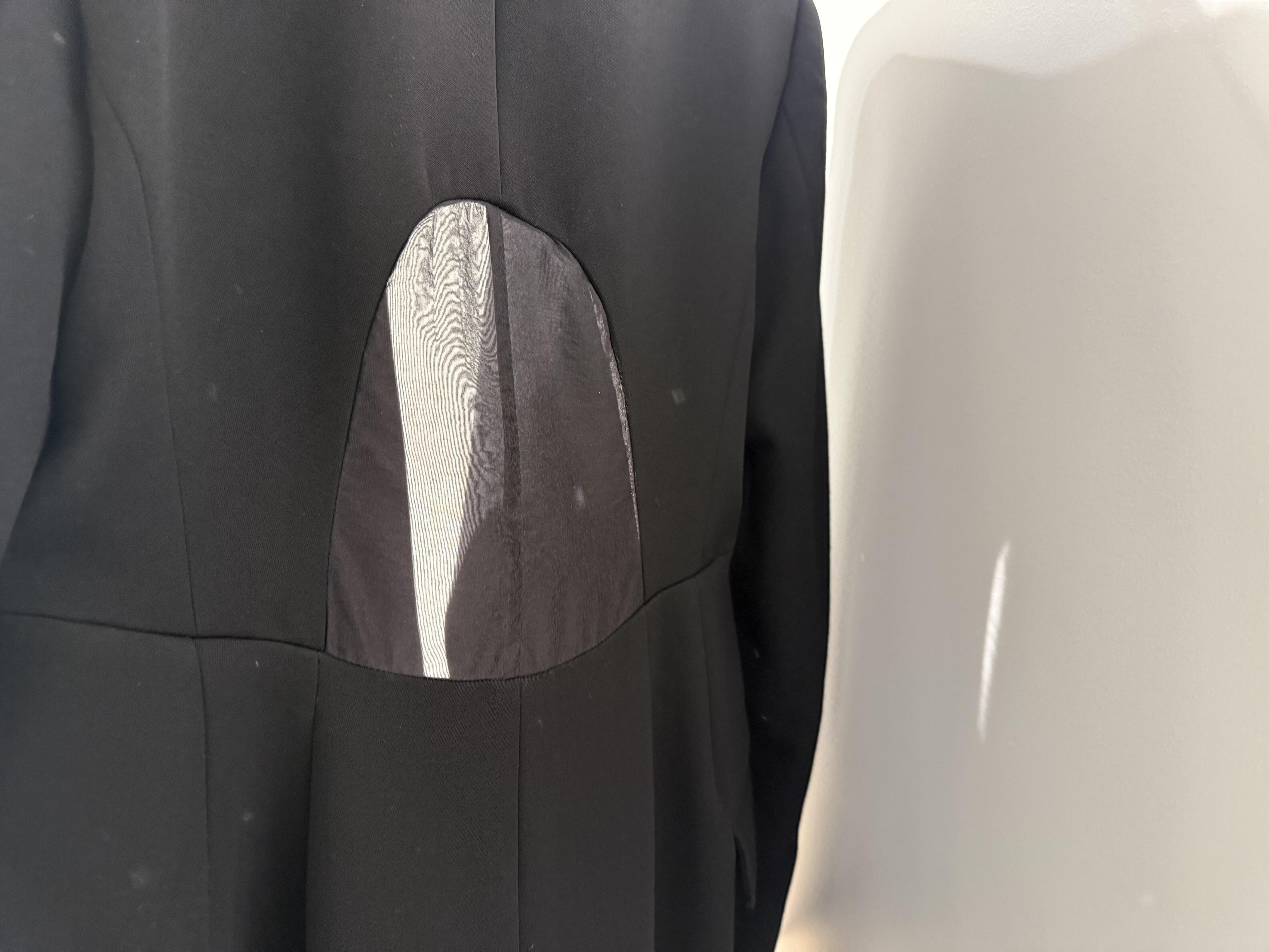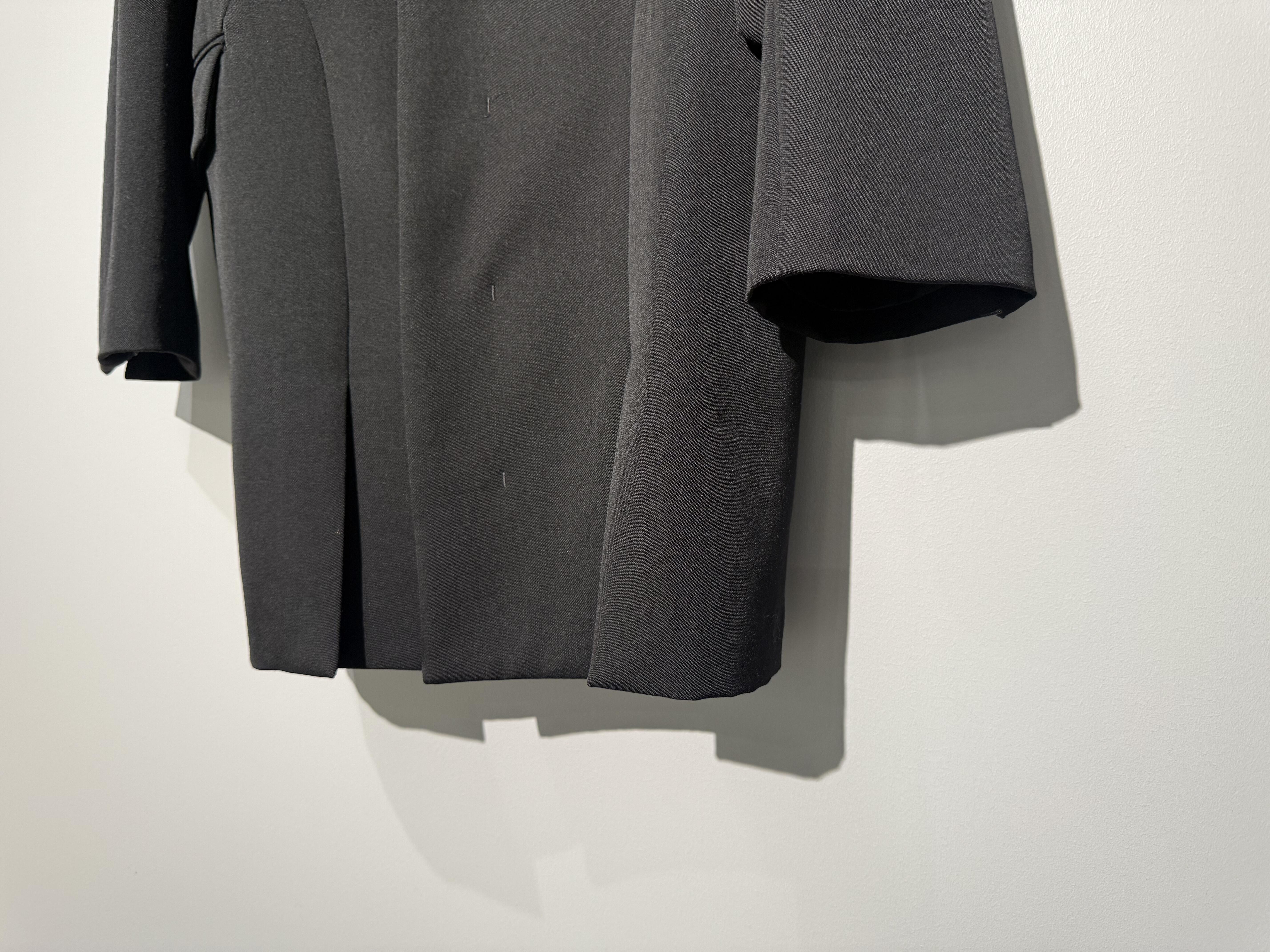 前身頃に2箇所ベンツ風のスリットがあり、背中にはシアーなナイロン生地を合わせています。
