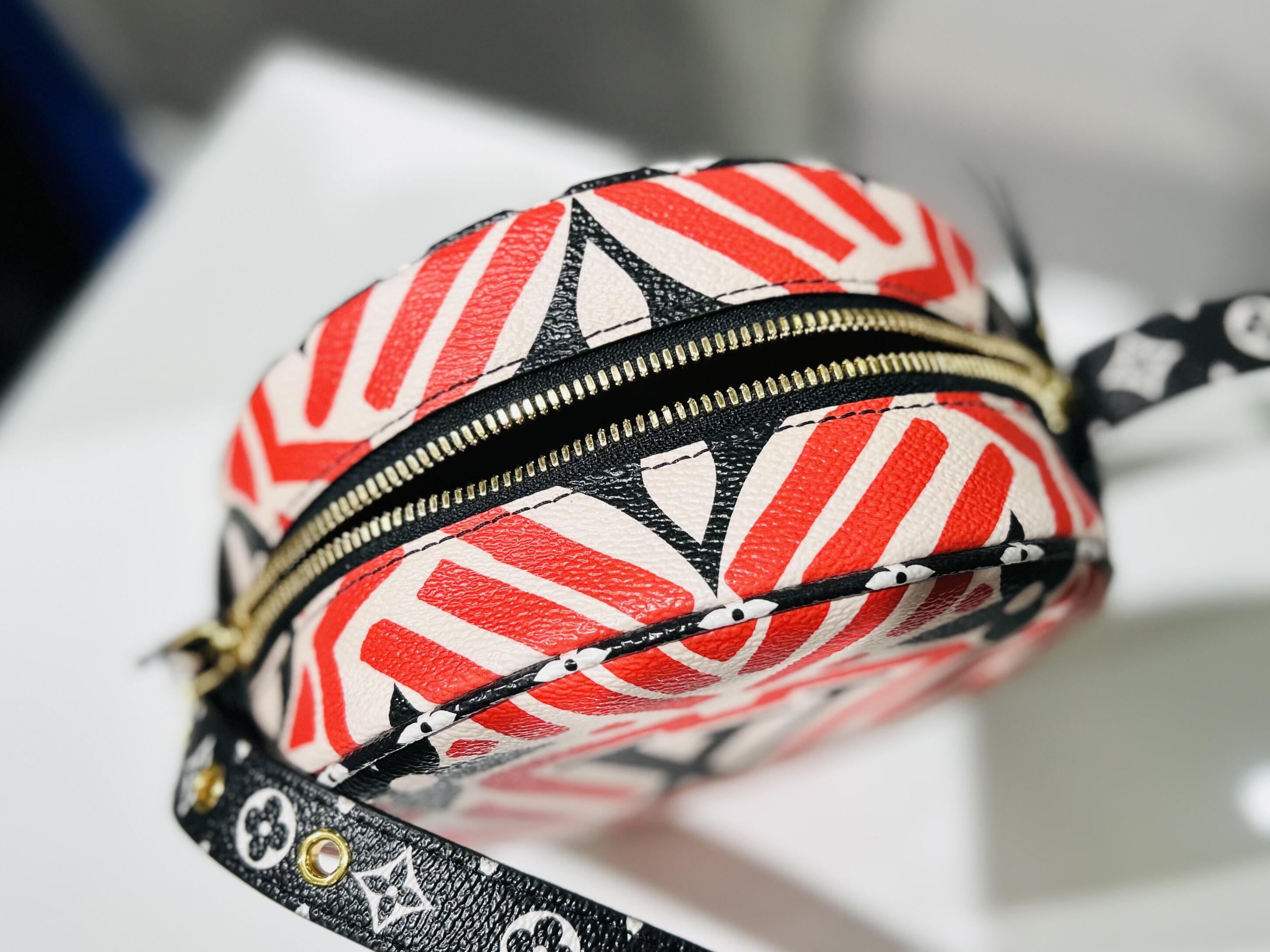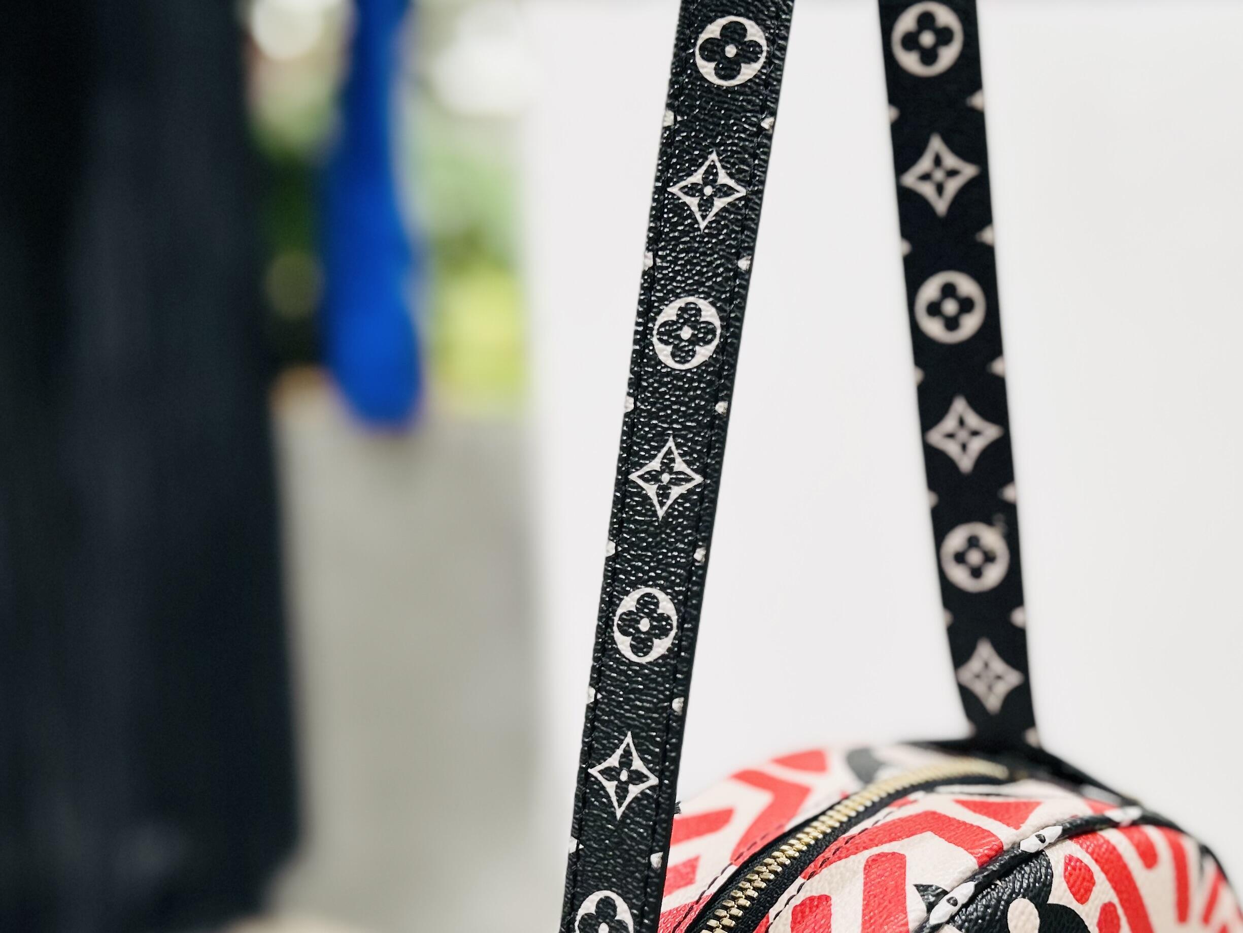 普段のLVアイテムよりもポップで華やかなカラーリングと大胆な柄が特徴です。