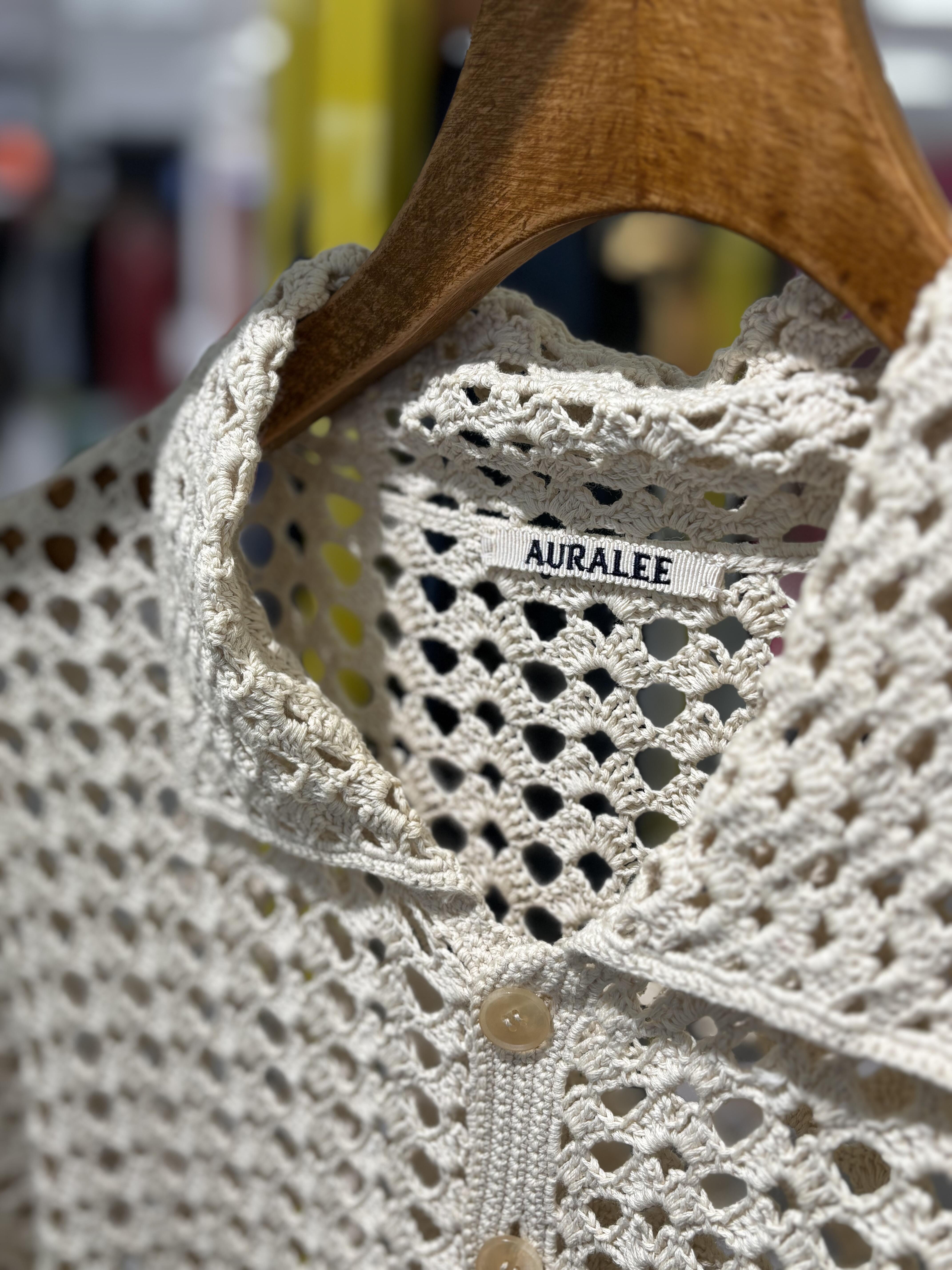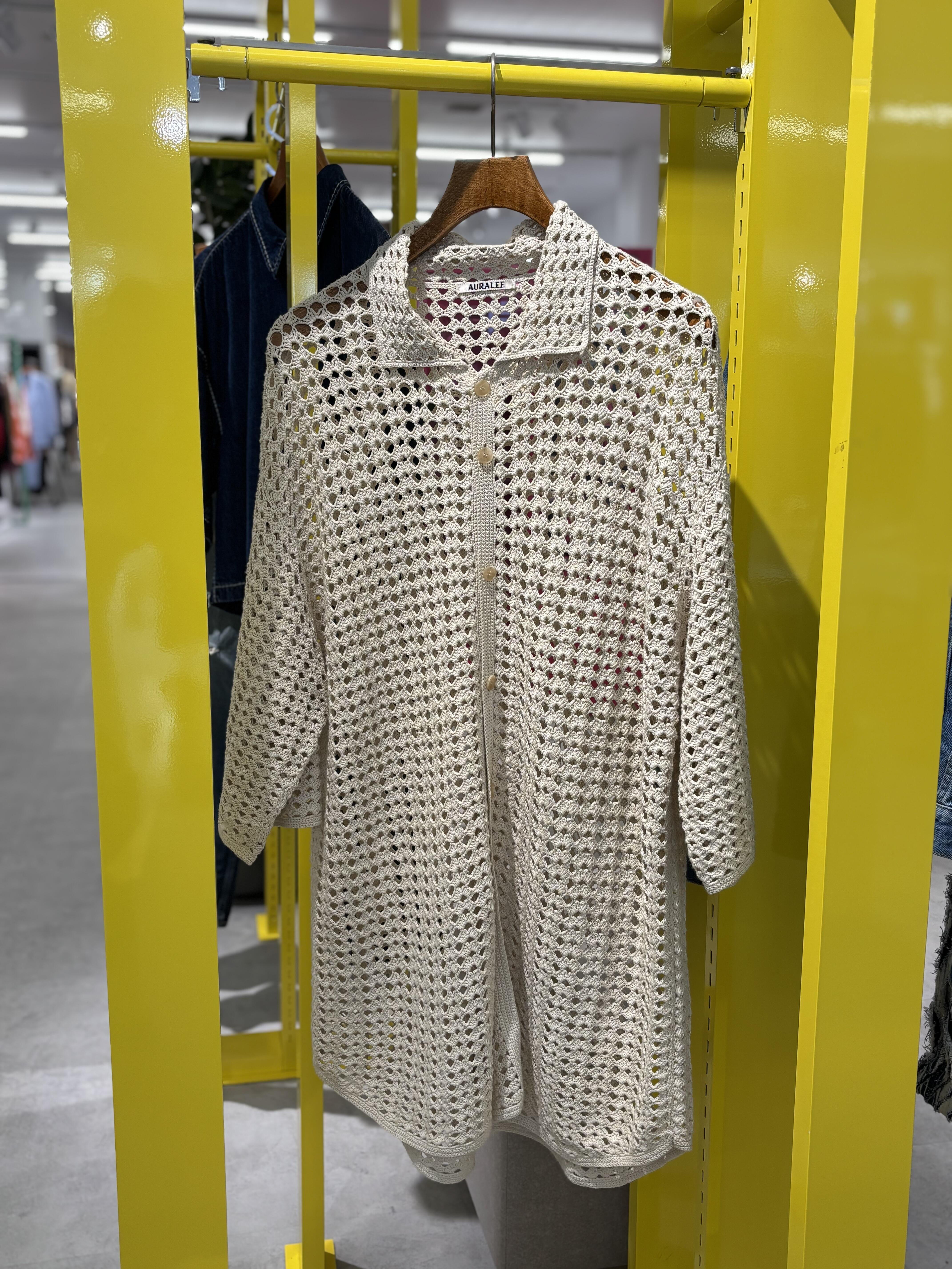 シンプルでベーシックなオーラリーのデザインの中でも一際目を惹くニットシャツ。
