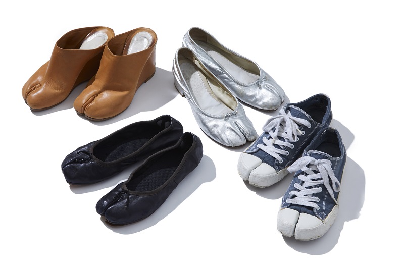 私が最初に購入したのは茶色のレザーでアンクルよりちょっと長い、基本の形となる足袋ブーツでした。本物の足袋と同じように、こはぜで留める仕様です。しかも当時の値段は今の半額、7万円ほど。足袋は私の中ではモードにはもちろん、カジュアルファッションにも溶け込みました。そしてどんなにヒールが高くとも、普段ヒールを履かない私にさえ履きやすい! レザーブーツ、スニーカー、サンダル、フラットシューズ、ミュール……。毎シーズンどんな“足袋シュー ズ”が出るのかとても楽しみでした。