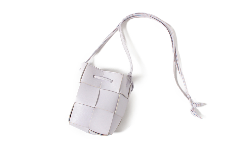 定番人着の“カセット”のミニ クロスボディバッグです。ライニングを廃したミニマルなデザインが特徴。ドローストリング仕様のミニサイズ バケットバッグ。