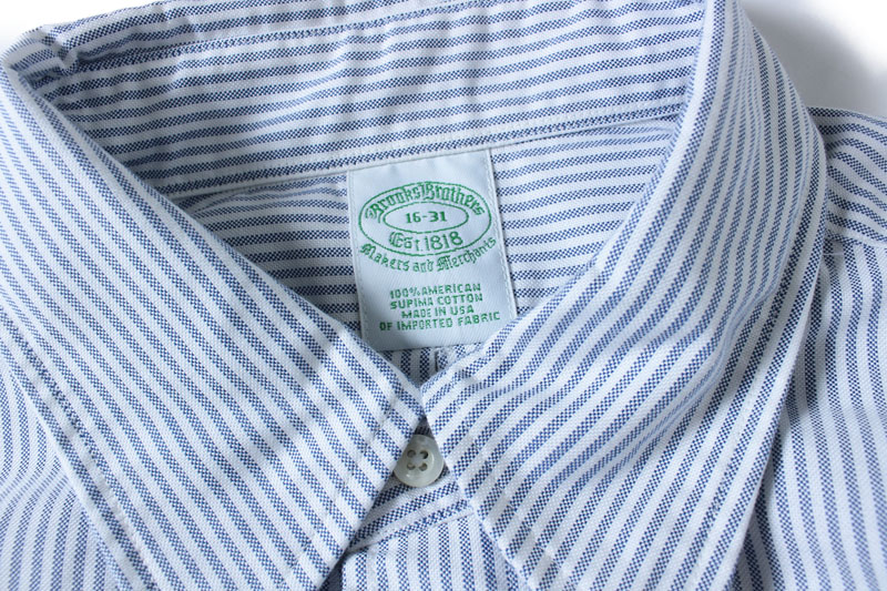 創業者の孫、ジョン・E・ブルックスが英国のポロ競技を観戦中、選手のユニフォームの襟がパタパタとなびくのを防ぐためにボタン留めされていたのを発見。そのデザインをシャツの仕立てに落とし込み販売し、今でもアイコンアイテムとして君臨し続けています。“ボタンダウンシャツ”を初めて作成したのが、[ブルックスブラザーズ]です。