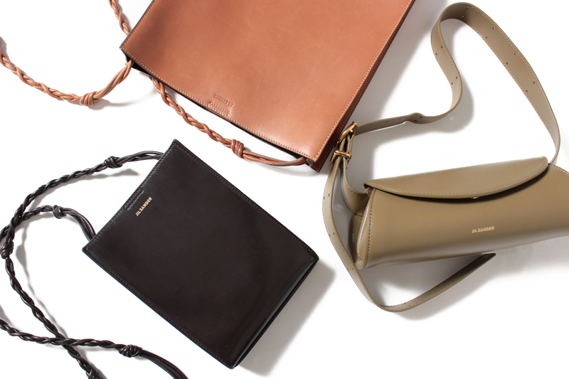 手作業でノットを付けたショルダーストラップと、控えめなエンボスロゴのミニマルなデザインが[ジルサンダー]らしいミニバッグ。“タングルも”、ここ数年で流行しているスマホくらいのサイズのミニショルダーバッグとして火付け役です。