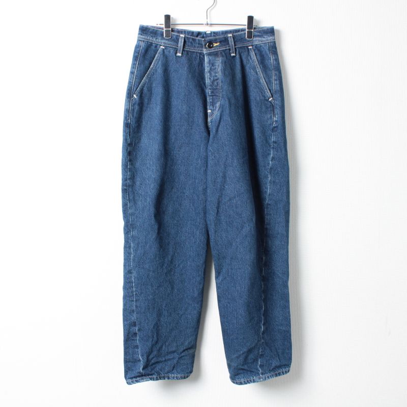 デニム元々の濃い色味と、古着ならではの風合いを感じられる一本。丸みのある腰回りからテーパードのかかったキレイなシルエットや、遊び心の感じられるポケットのデザインも魅力的です。色落ちだけなら、レプリカジーンズブランドや、アメカジブランドも同じように綺麗に仕上がりますが、一つ一つこだわり抜かれたシルエットやディテール、そしてイギリスのブランドということもあって、どこか気品が感じられるモードな雰囲気がお気に入りです。