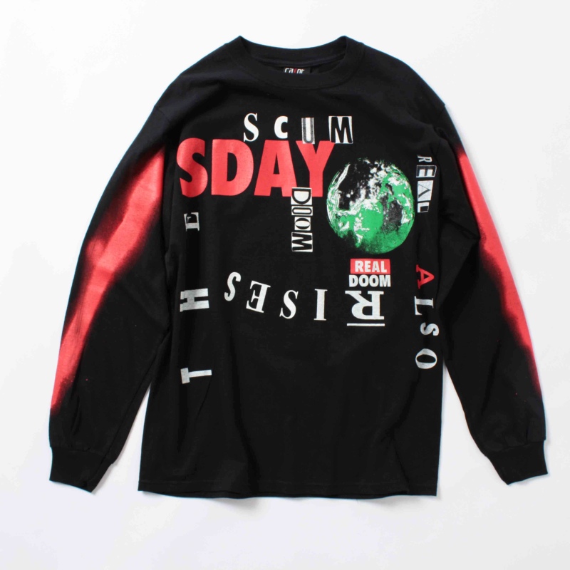 [ブラックスキャンダルヨウジヤマモト]のカットソーは、メッセージやデザイナーの顔がプリントされた大々的なプリントが特徴的です。着丈も身幅も長く広く取られており、ブランドらしいシルエットです。ボトムスには、[ヨウジヤマモトプールオム]のパンツで合わせ、クールでモードな雰囲気のコーディネートに仕上げました。