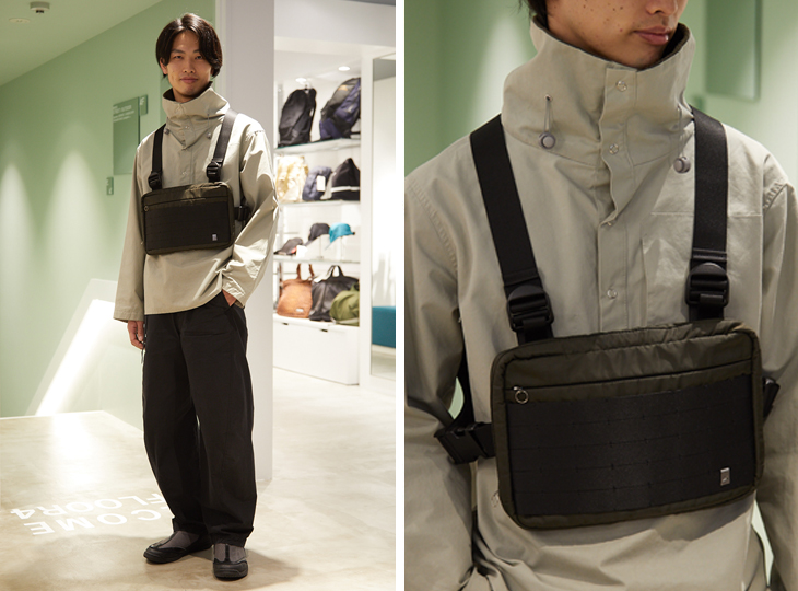 「[ルメール]のハイネックシャツにベンタイルコットンを使用したベルテッドトラウザーズでテック系を意識。[ アリクス] のボディバッグでアクセントを加えました」