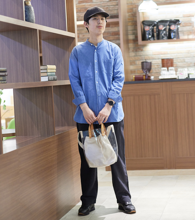STYLE01 清潔感を演出するバンドカラーシャツ