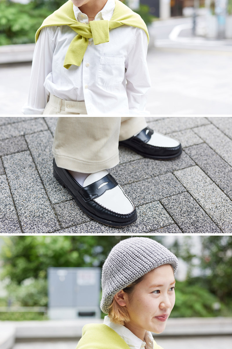 定番アイテムの白シャツ。オールシーズン活躍するので、一枚はお気に入りを持っていたいですよね。オーガニックやリサイクルをブランドコンセプトとしている[ドーサ]のシャツは、洗練されたシルエットはもちろん、コットン地でサラッとした肌触りが特徴。季節の変わり目にもピッタリです。今回は[サイ]のコーデュロイパンツで色を揃えて、ワントーンコーデにしてみました。簡単ですが、グッとこなれ感が出て上級者風になれる着こなしテクニックです。アクセントにライムグリーンのニットと[エンダースキーマ]のレザーバッグをチョイス。小物次第で表情を変えれば、白シャツのアレンジは無限大です!