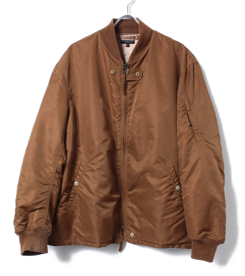 ミリタリーブルゾンは、戦時の兵士の身を守るために作られた機能性とデザイン性に優れたライトアウターです。今では、様々なブランドがサンプリングをして馴染み深いアイテムになりました。今回は[エンジニアドガーメンツ]のMA1をピックアップ。MA1は、カーキや黒色のボディに着丈が短いアイテムが多いですが、こちらは茶色で着丈がやや長めと、カジュアルに取り入れやすいアイテムにアップデートされています。ミリタリーブルゾンには、M65(フィールドジャケット)やM51(モッズコート)など、様々な種類があります。元々の原型を知っていると、サンプリングされた洋服の意図を理解できるのがファッションの楽しいところですよね。
