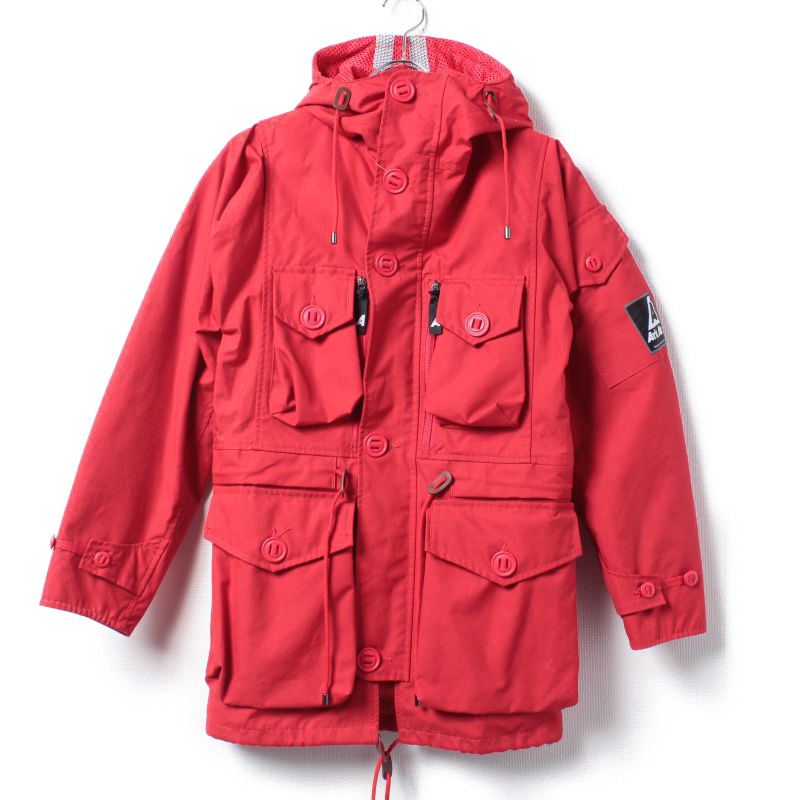 アウトドアならではの色味や機能性が魅力のマウンテンパーカー。今回は、[パタゴニア]のH2Noと呼ばれる、ポリウレタン樹脂加工が施され、軽量で防水性に優れたマウンテンパーカーをピックアップ。光沢感が少ないマットな赤色なので、街着としても馴染みやすいのが魅力。マウンテンパーカーはジャストサイズを選び、パンツや小物にボリュームを出すことで、スタイルアップも叶います。自然と心も身軽になりアクティブなシーンにも対応可能です。アウトドアブランドだけではなく、様々なブランドで高機能、デザイン性に優れたマウンテンパーカーを展開しているので、ぜひチェックしてみてください。