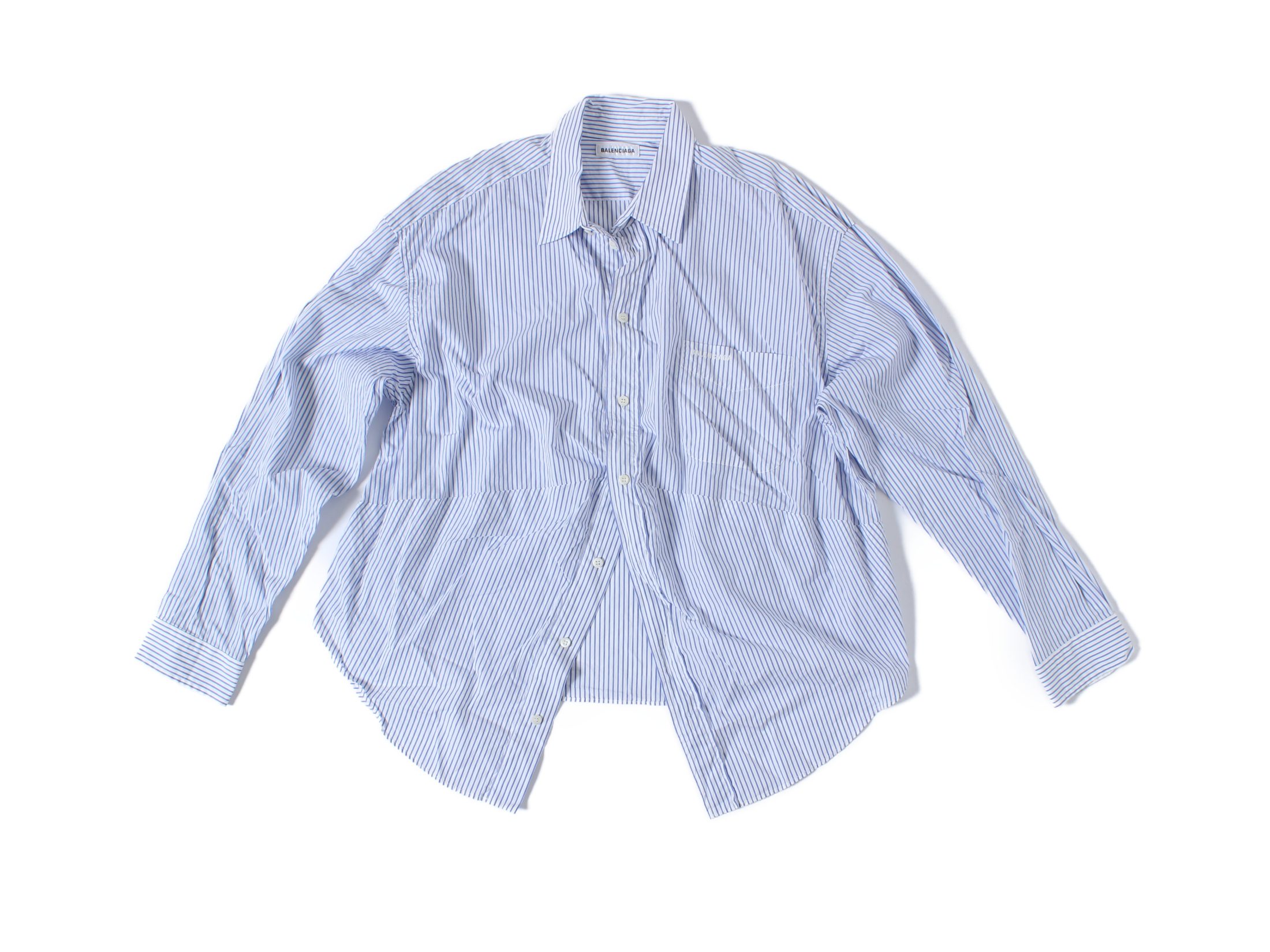 一着一着のシルエットや造りに、こだわりが光る[バレンシアガ]。トレンドかつ定番のストライプシャツも、さりげない切り替えデザインでふわっと裾の広がる独特なシルエットに。あえて裾のボタンを開けたり、ワイドなスカートやワンピースと合わせたりと、とことんシルエットを楽しむのがおすすめです。