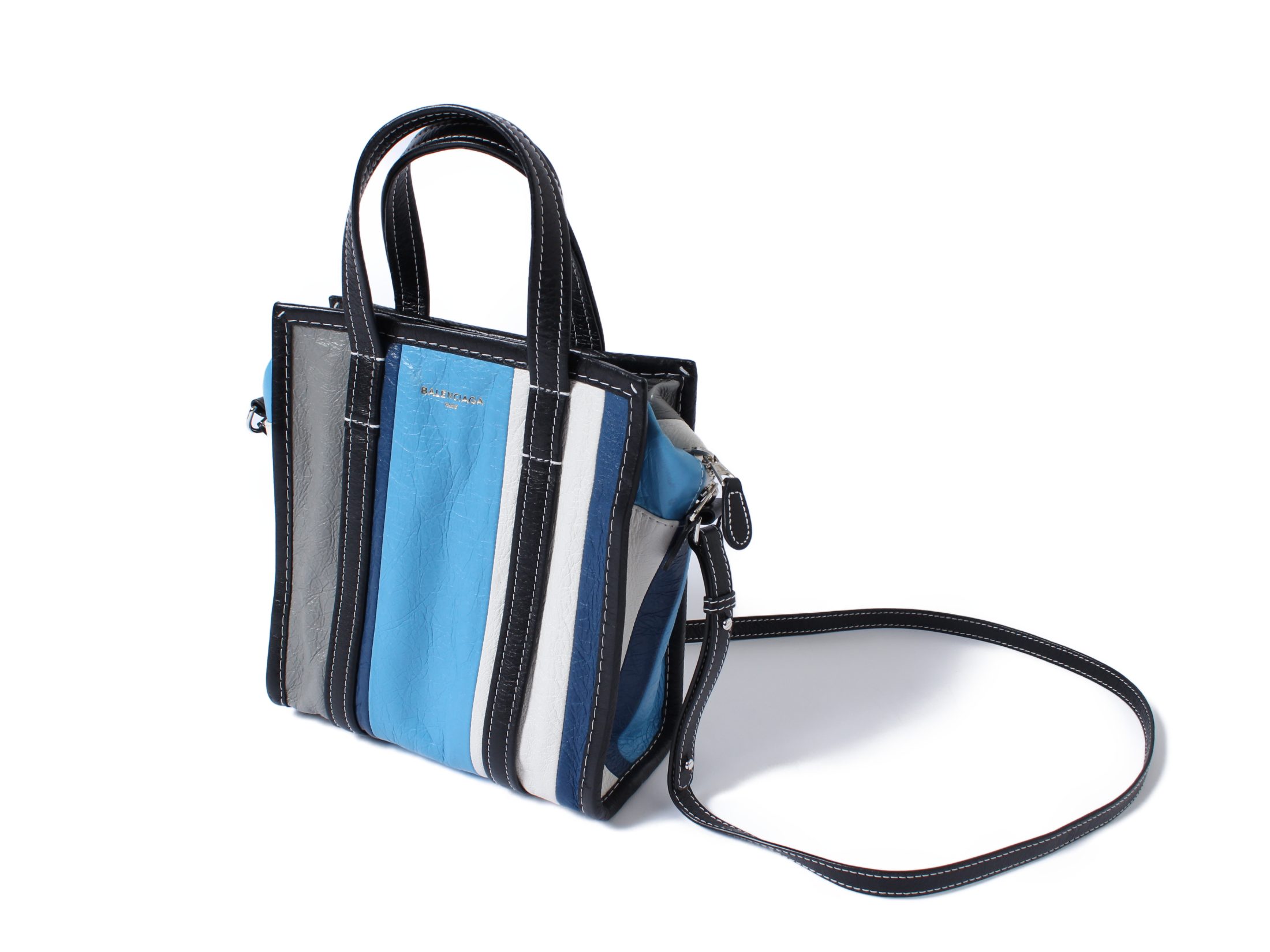 アシンメトリーのストライプシャツにブルーデニムを合わせ、爽やかなでカジュアルな印象になるようにスタイリングしました。 ブランドが得意とする、オーバーサイズのアイテムは一点投入するだけでこなれ感を演出してくれます。子供っぽくならないよう、 同じく[バレンシアガ]の黒のビッグバッグを合わせて全体を引き締めました。