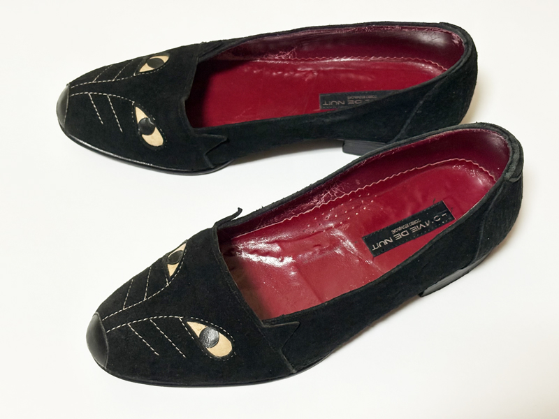 筆者が所有する熊谷登喜夫さんがデザインした1980年代のネズミモチーフの靴。メンズの[HOMME DE NUIT(オムドニュイ)]のもの。