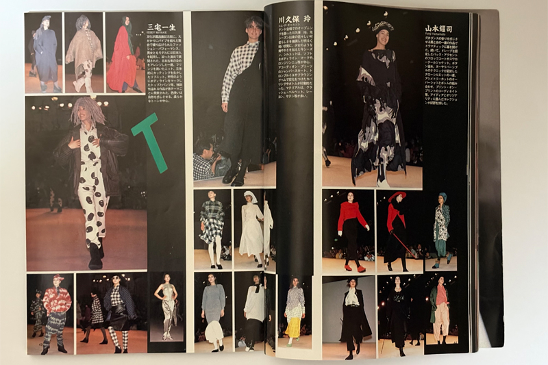 1985年7月号の『MODE et MODE』の誌面より。2026年春夏の楽天ファッション・ウィーク東京で7年ぶりのショーを開催する津森千里さんは、イッセイミヤケ傘下の[I.S. chisato tsumori design]で東コレに参加していた。